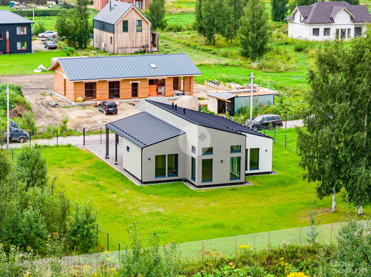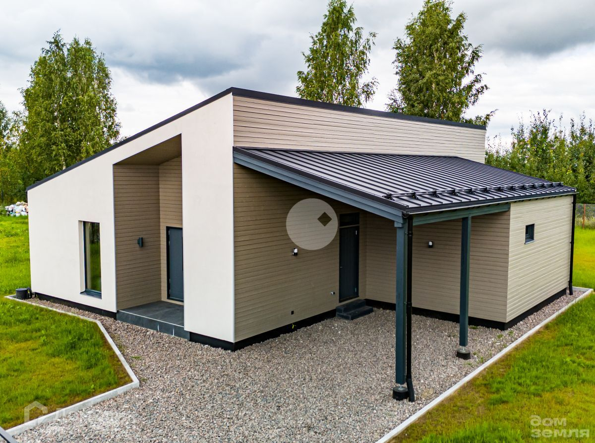 Дом построен по каркасной технологии исключительно из сухой строганной доски по современным технологиям с соблюдением всех необходимых технологических решений. Стропильные фермы собраны на МПЗ заводским способом, в качестве утеплителя использована минеральная вата Rосkwооl, снаружи установлена ветрозащитная плита Веltеrmо шип-паз и деревянная облицовка имитатором бруса в сочетании с оштукатуренными поверхностями по аквапанели. На крыше применена металлическая фальцевая кровля Grаnd Linе со снегозадержанием. Смонтирована система вентиляции. Фундамент - монолитная плита с системой водяного теплого пола. Эффективные панорамные энергосберегающие окна, теплые входные двери в дом, кладовку и котельную.