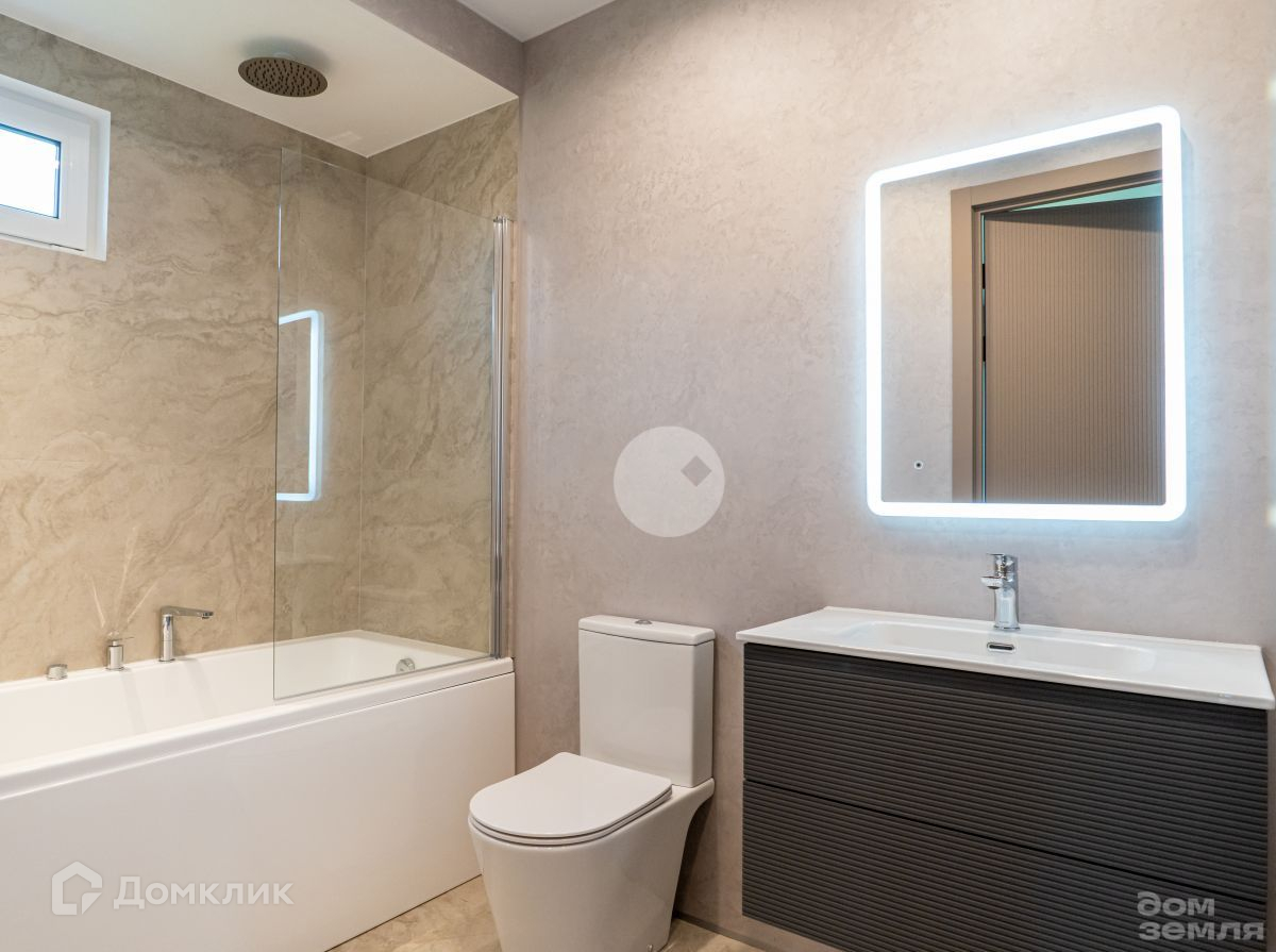 Современный актуальный дизайн дома как снаружи, так и внутри. Полностью укомплектованые санузлы с отделкой из итальянского керамогранита в сочетании с декоративной штукатуркой. На полу в гостиной и комнатах немецкий ламинат. Во всех помещениях светодиодные светильники и электрофурнитура. Уличные светильники также светодиодные. Помещение котельной полностью смонтировано и оборудовано электрокотлом, бойлером, системой ВК и канализации, системой теплых полов.