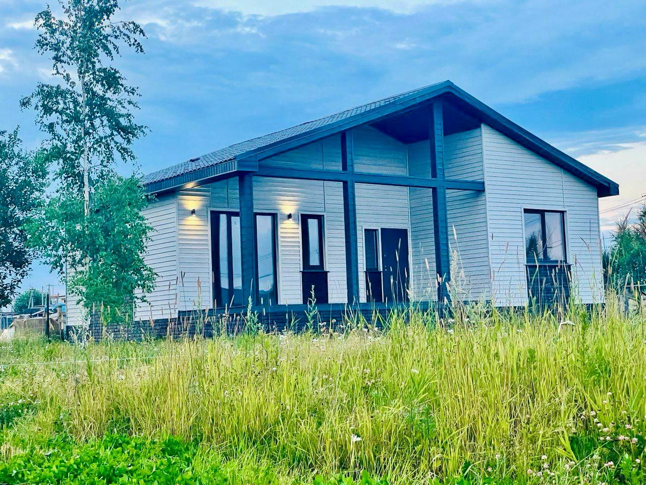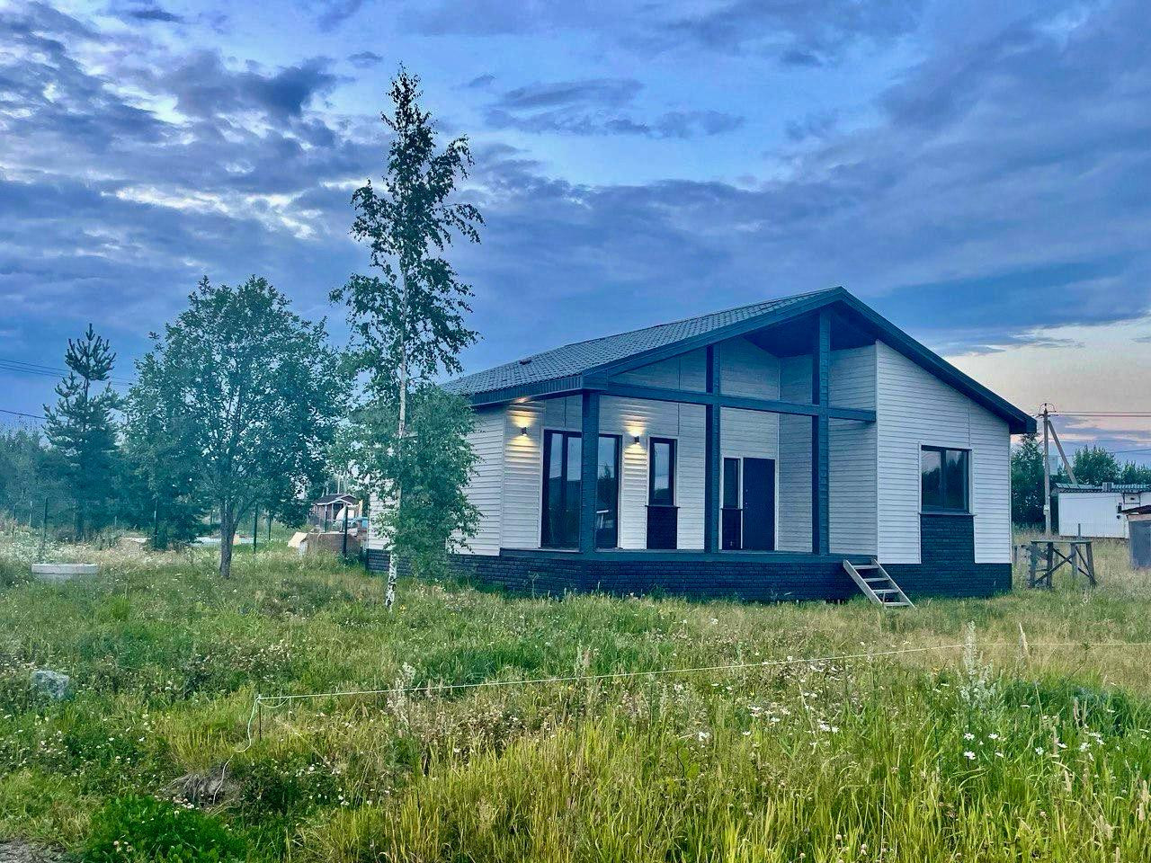 Продается одноэтажный жилой дом, площадью около 104 м², с большой гостевой комнатой, также в доме имеется сауна, 3 комнаты, спальня, санузел и выход на террасу с навесом. Каркасный дом 2022 года постройки на ровном участке прямоугольной формы-  6 соток. Дом с чистовой отделкой, для круглогодичного проживания. Канализация: Септик- 5, Отопление электрическое, (радиаторы), Крыша метал.черепица, Водоснабжение- колодец,