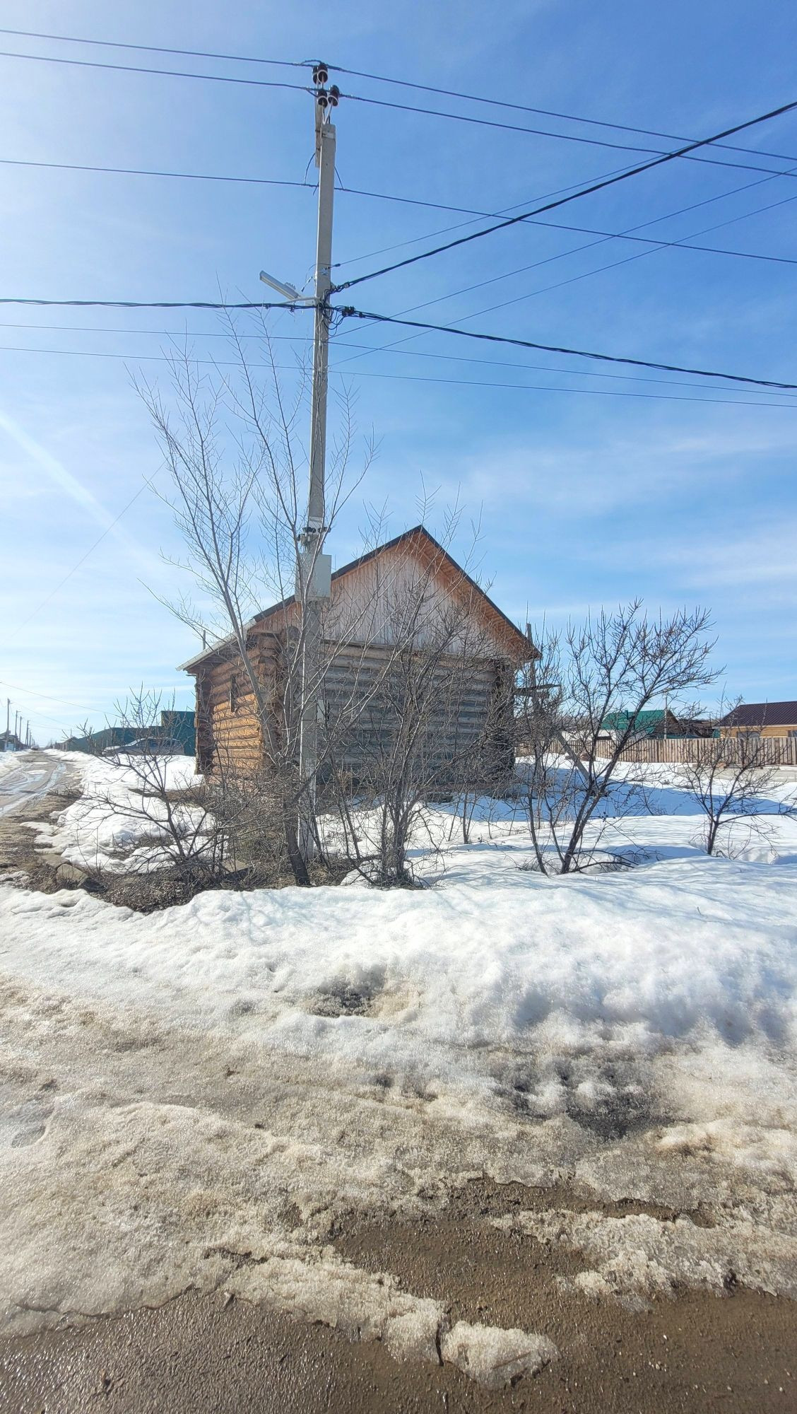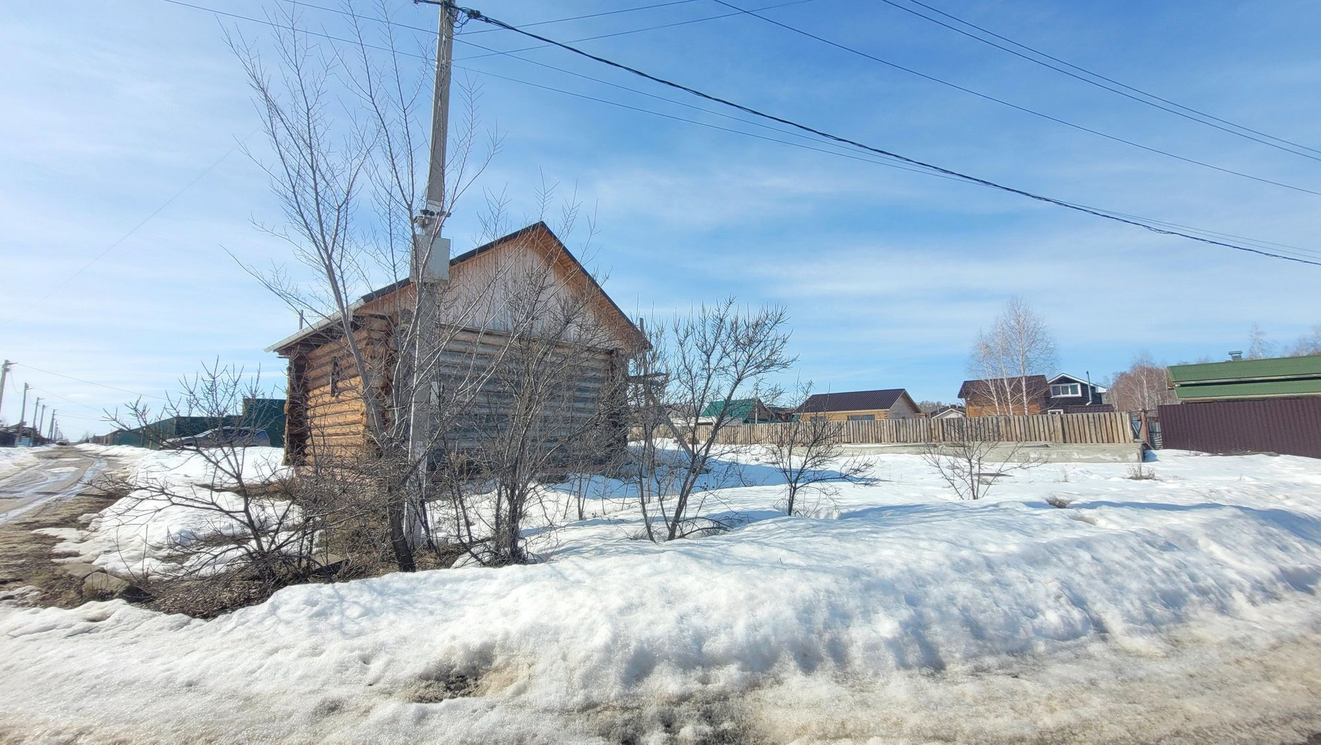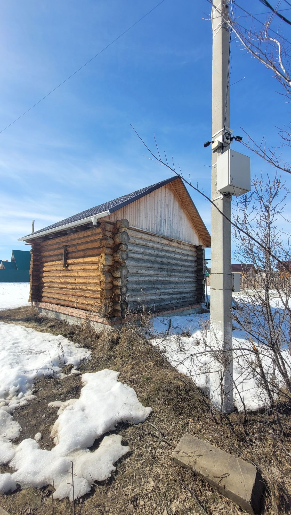 На участке есть сруб под баню, фундамент под дом, выгребные ямы (2 колодца), скважина.