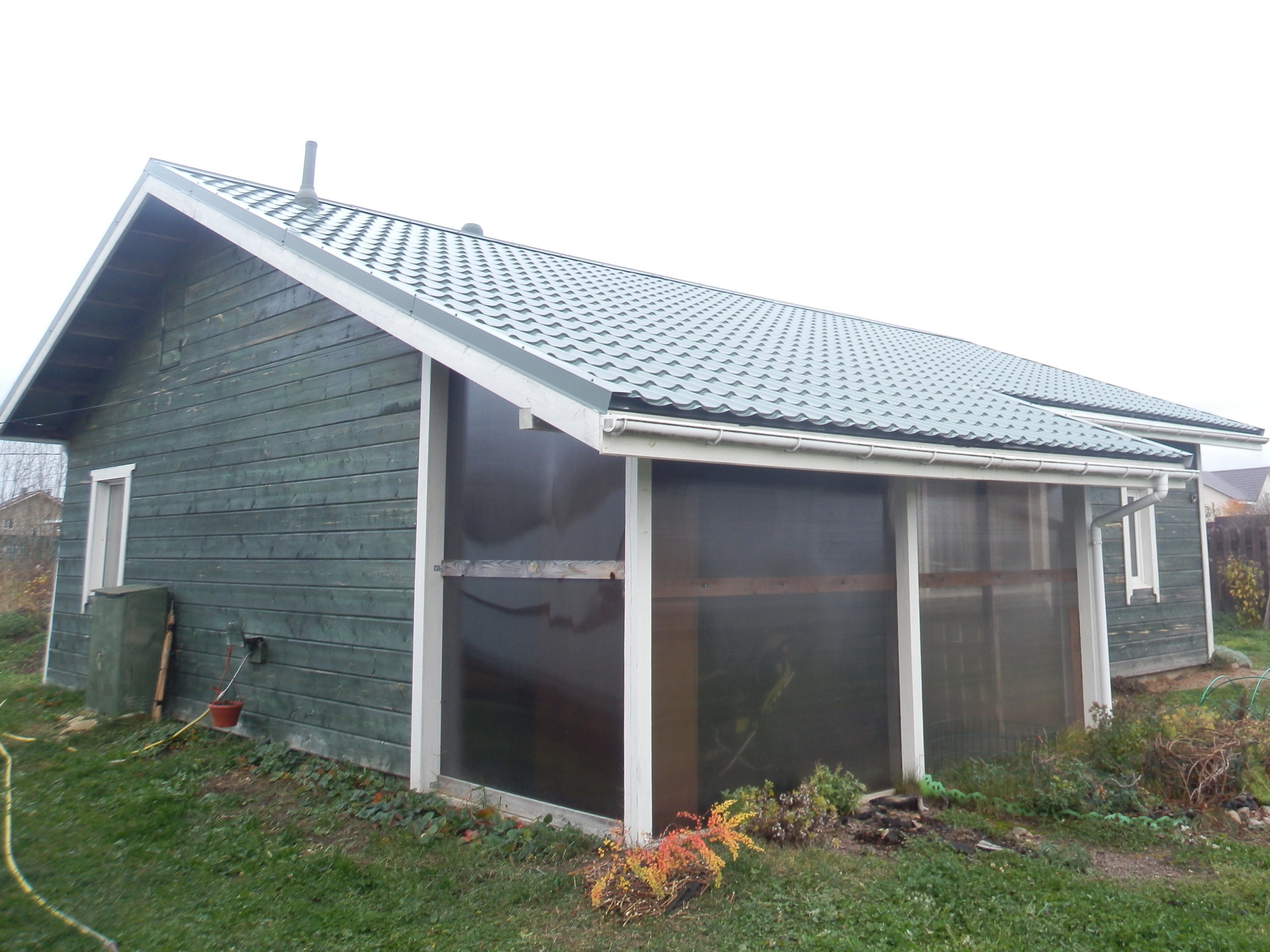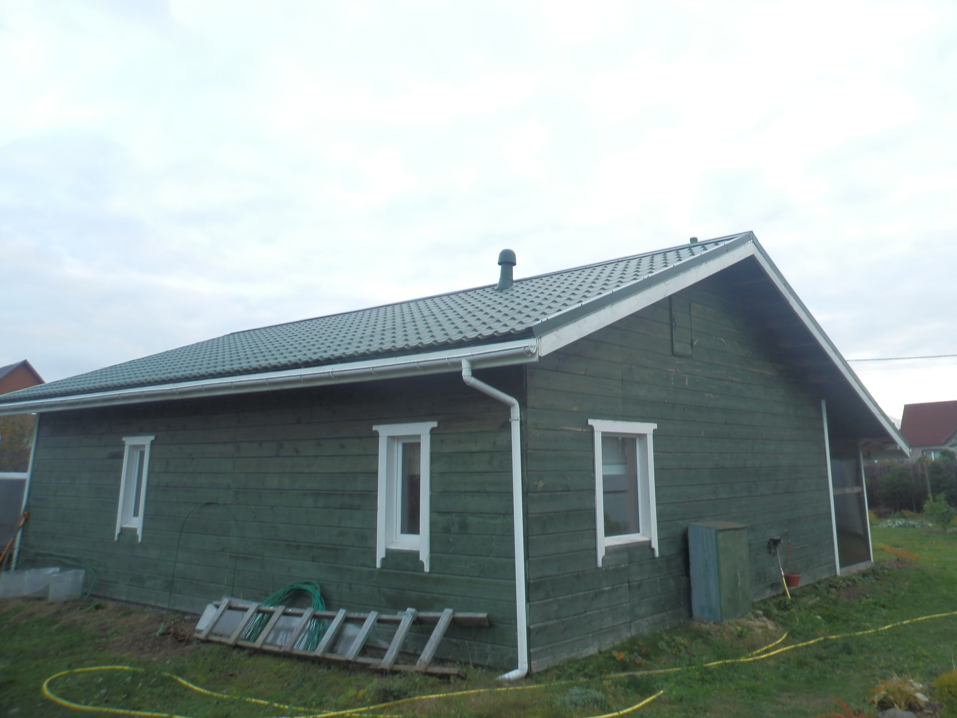 Фундамент - плита, крыша металлочерепица, утепление 200 мм.