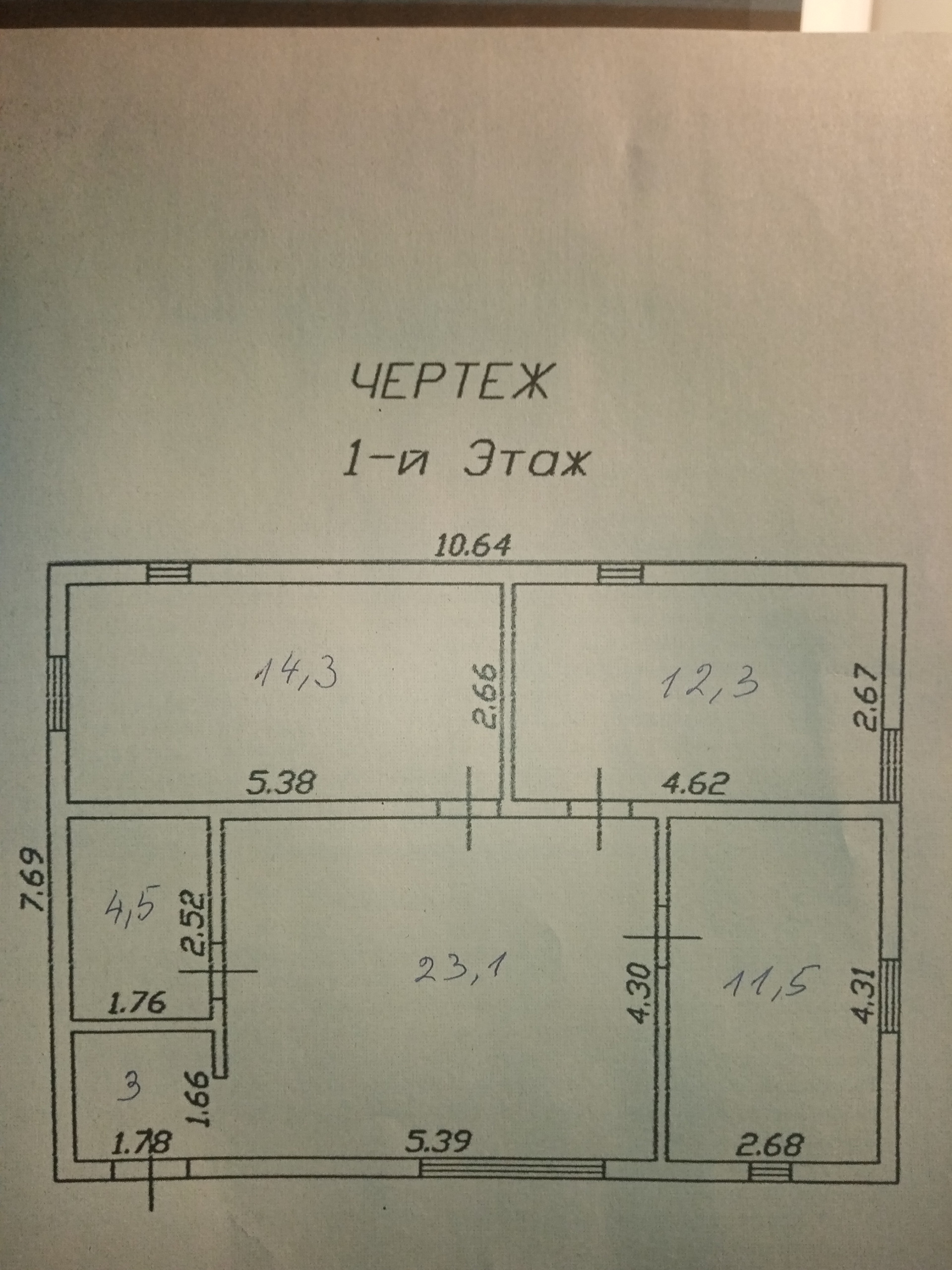 2 спальни -14,3 и 12,3 кв.м., кабинет - 11,5 кв.м., кухня-гостинная - 23 кв.м., совмещенный с/у с ванной - 4,5 кв.м., тамбур.