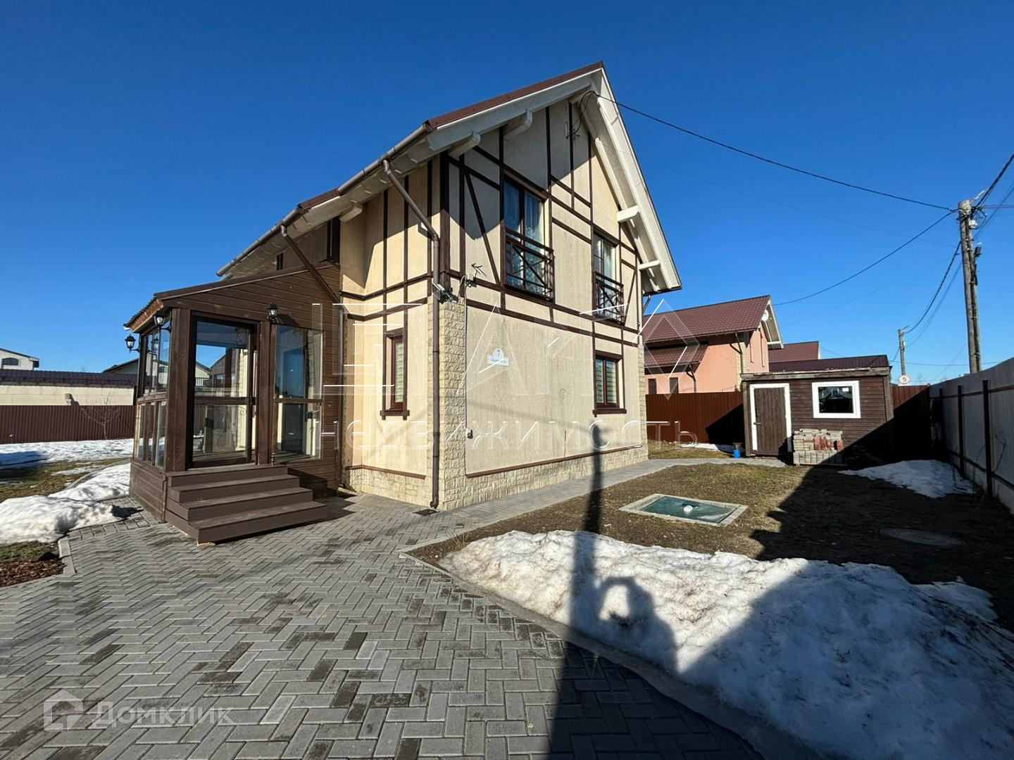 В доме 3 спальни ( 13+18+9 ), кабинет ( 9 кв ), кухня-гостиная ( 34 кв ) с большими окнами и выходом на улицу, гардеробная, 2 санузла. Все что нужно для постоянного проживания. Так же пристроена летняя веранда ( 30 кв. ). На территории стоят два сарая.