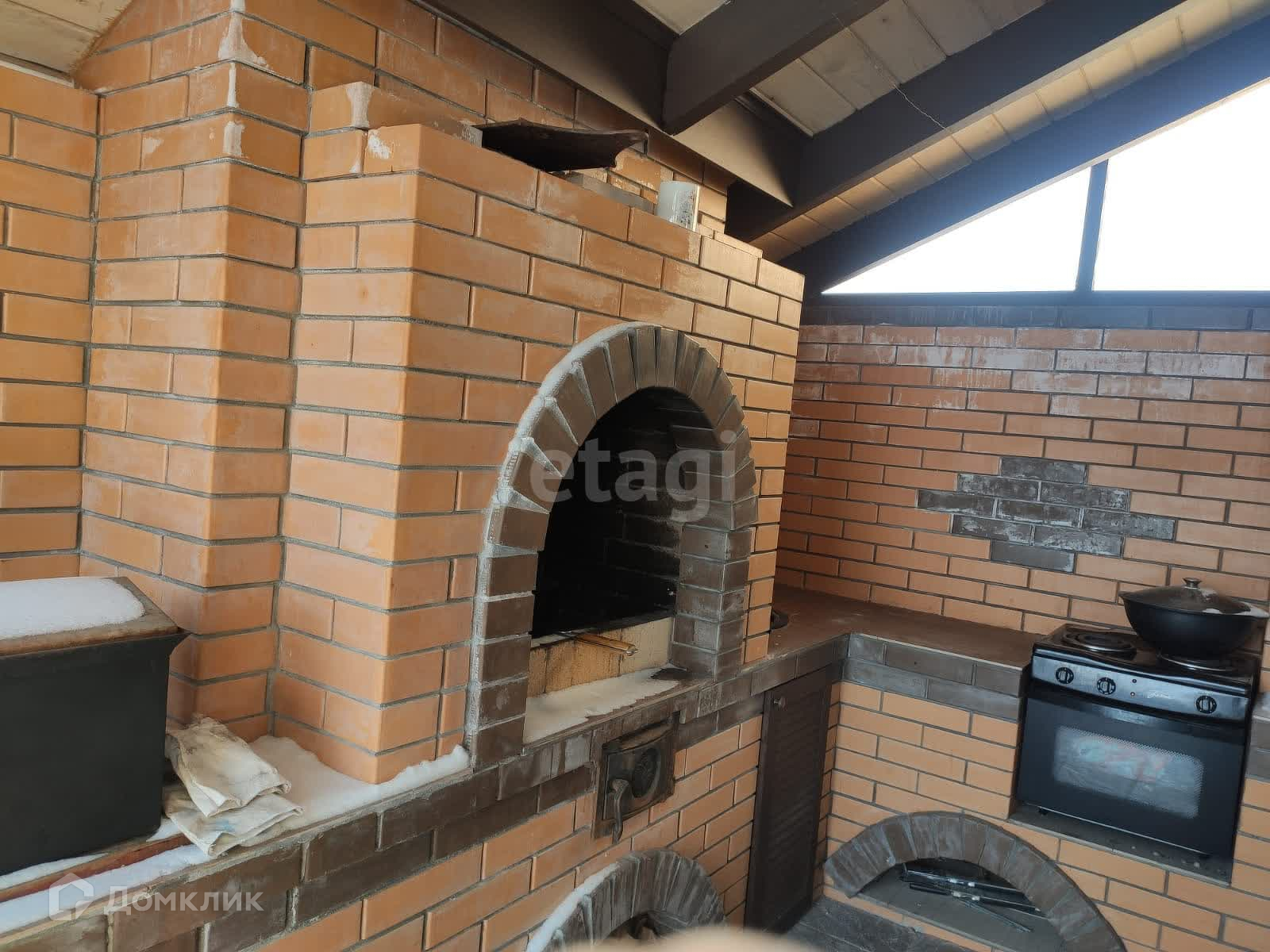 Зона барбекю под крышей. Сделана как летняя кухня. Встроенная электроплита с духовым шкафом и мойка. Предусмотрено все для комфортного отдыха на свежем воздухе.