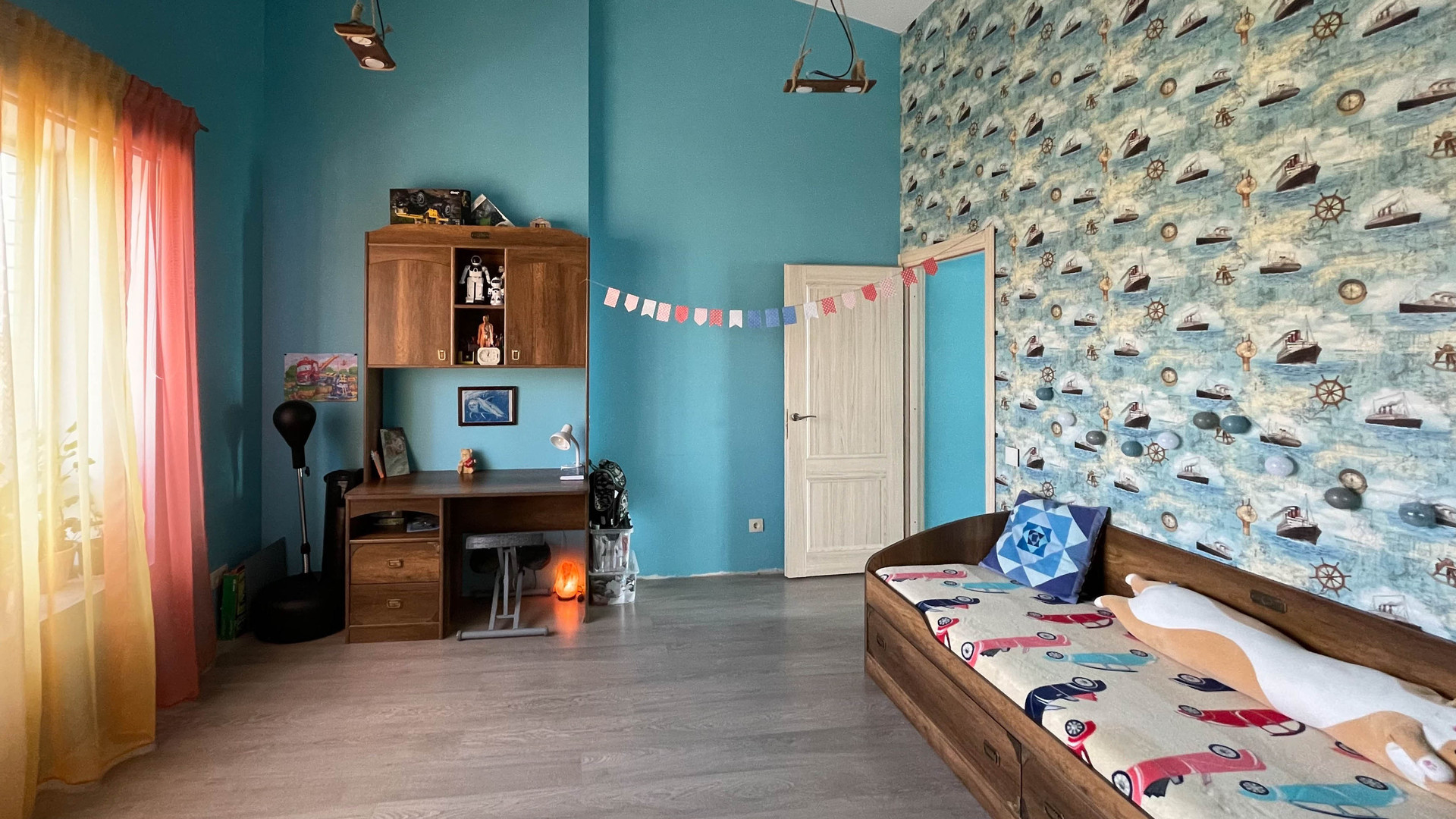 Первый этаж кухня совмещенная с залом (оборудованным под домашний кинотеатр). Второй этаж 5 комнат. Установлен экономичный двухконтурный конденсатный газовый котел бакси, разработанный специально для теплых полов. Система умный дом. Предусмотрено охлаждение всех комнат. Высокие потолки, большие окна, за счет этого в доме всегда светло.