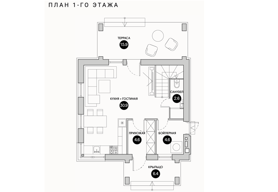 Предлагается к строительству  2-этажный  дом общей площадью 103 кв. м и жилой площадью