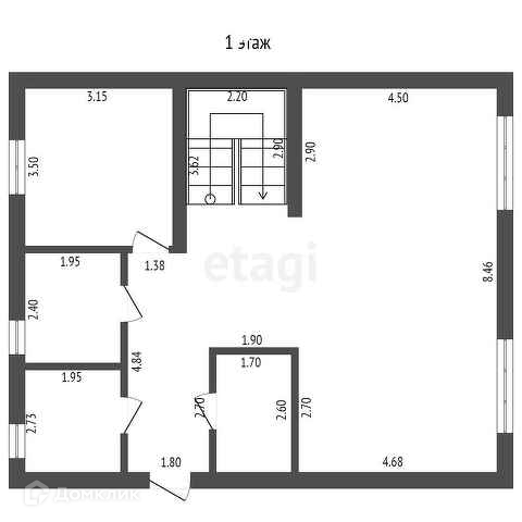 Первый этаж: большая кухня-гостиная, гостевая комната, гардеробная, санузел, бойлерная.