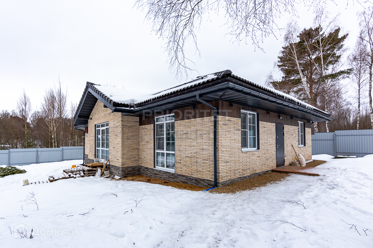 Дом: Загородный дом 150 м2  с отделкой «под ключ». Дом построен в 2021 году. Фундамент железобетонные сваи + монолитная плита. Стены - керамические блоки Porotherm 44,фасад оштукатурен, облицован декоративным кирпичом Реген Брик, планкен из лиственницы. Кровля - цементно-песчаная черепица.