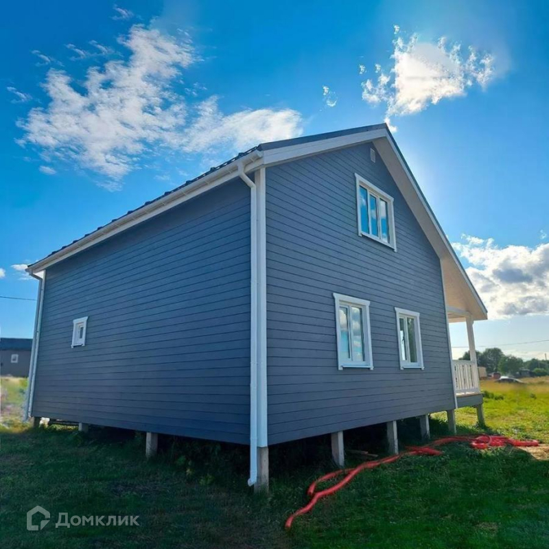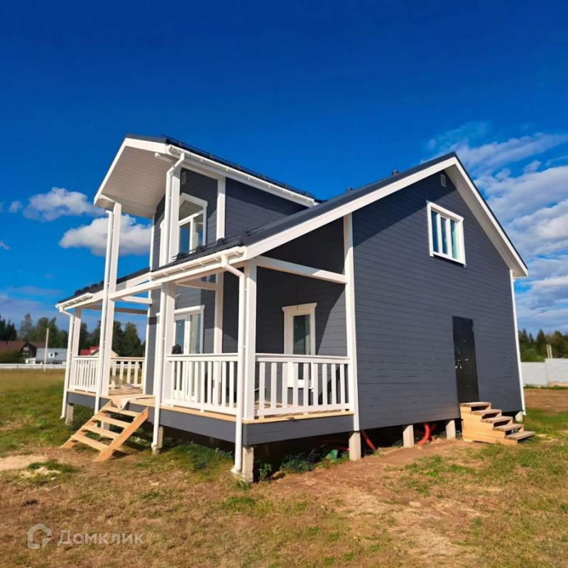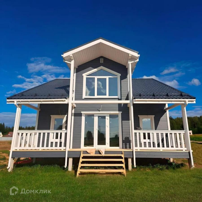 Стильный коттедж со скандинавскими мотивами. Изюминка дома - потрясающее панорамное остекление во входной зоне, которое является прекрасным акцентом, а также добавляет много света и увеличивает пространство.На первом этаже: кухня - гостиная, комната, санузел, котельная, холл, тамбур и терраса 17 м2. На втором этаже: три спальни, санузел, холл и гардероб. Размер дома: 9м х 9,4м. Фундамнт: забивные железобетонные сваи. Наружная отделка: имитация бруса (рау-хаус) Материал покрашен на производстве механическим способом, на станке в 2 слоя лессирующей краской. Материал предварительно отшлифован. Внутренняя отделка: влагостойкий гипсокартон-Гипрок. Монтаж водоснабжения и отопления произведен из сшитого полиэтилена скрытым способом. Монтаж обвязочного бруса в 1 слой.  Утепление: пол и стены - Рулонный утеплитель Knauf Aquastatik толщиной 150 мм. в три слоя. Монтаж металлической сетки от грызунов. Монтаж покрытия кровли: Металлочерепица с полимерным покрытием, толщиной 0.45 мм. Устройство вентиляции Проходные элементы Технониколь в кровле. Устройство вентиляции ПВХ трубы с соединением, разводкой по дому. Утепление алюминиевой гофры в подкровельном пространстве рулонным утеплителем. В доме разведено электричество (15 кВт). Площадь участка 9 соток. Водоснабжение - колодец на 13 колец. Сделан дренаж по периметру дома и выведен за пределы участка в общую трубу. На участке построена хоз. постройка 3х6 м (под любые нужды). По периметру дома и участка установлена система видеонаблюдения.