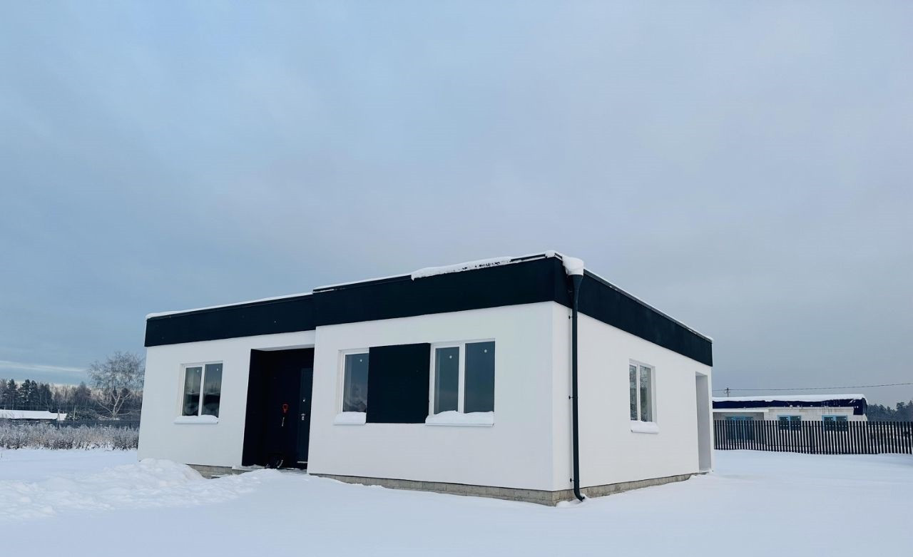 Коттедж 105,3 кв.м. под чистовую отделку, выполнен из автоклавного газобетонного блока плотностью D400, толщина стен 400 мм, перегородки 125 мм. Дом выполнен в современном стиле Хай-тек, эргономичен. Возможна продажа с ремонтом любого уровня. Возможна организация эксплуатируемой кровли, будет прекрасны местом для отдыха.
