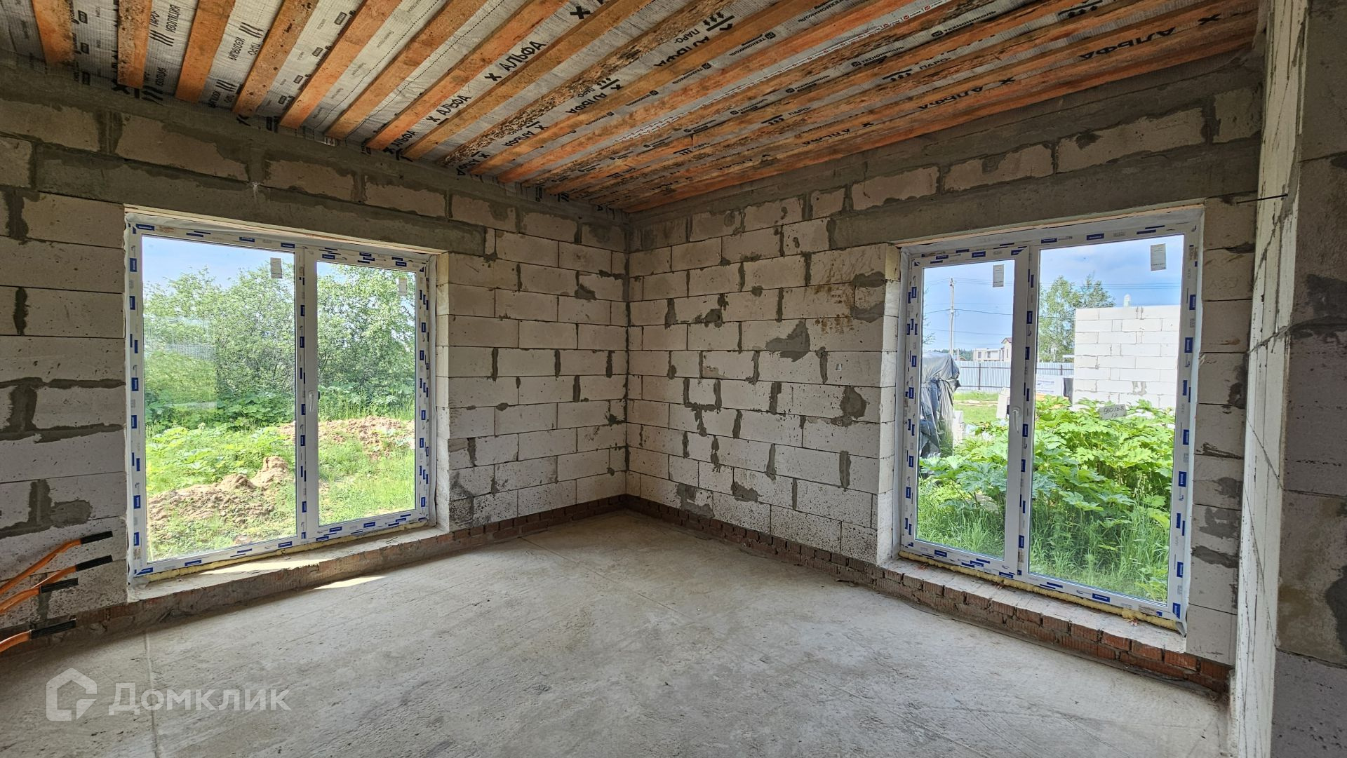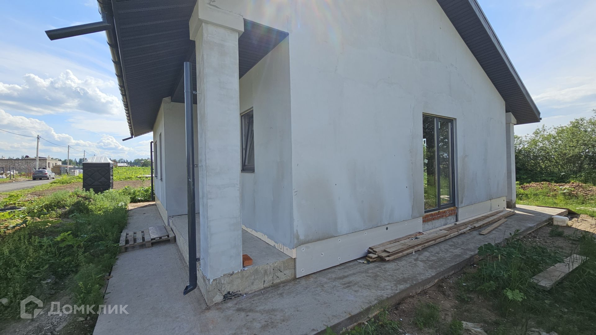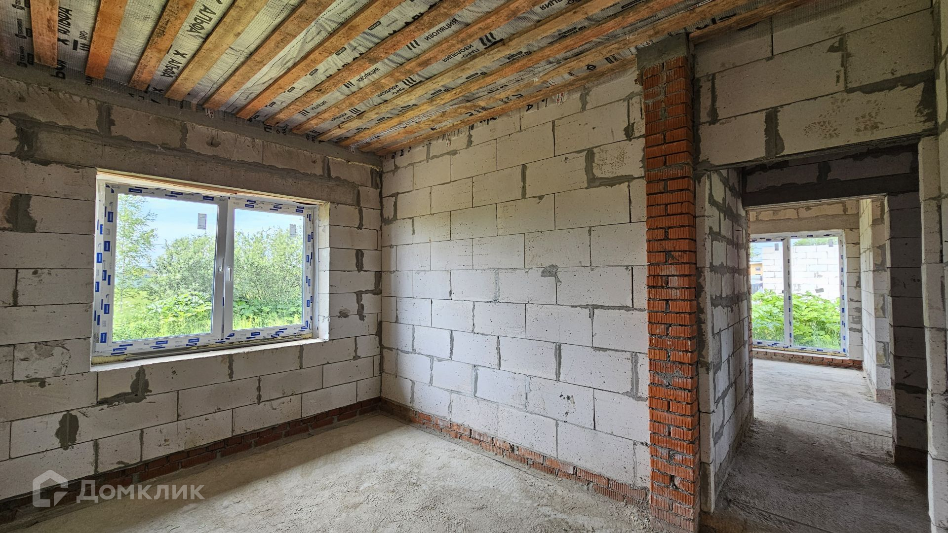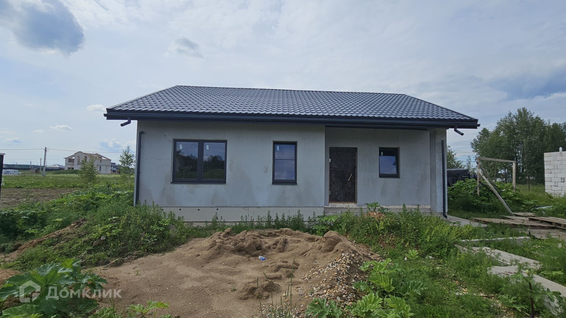 Сам дом выполнен из газоблока 400 мм, полностью отделан снаружи. Фундамент - монолитная плита, есть отмостка. Крыша Уникма - металлочерепица. Окна - качественные теплые стеклопакеты от фабрики окон (лучшие производители), панорамные в гостиной. Высота потолка 3,20 м.