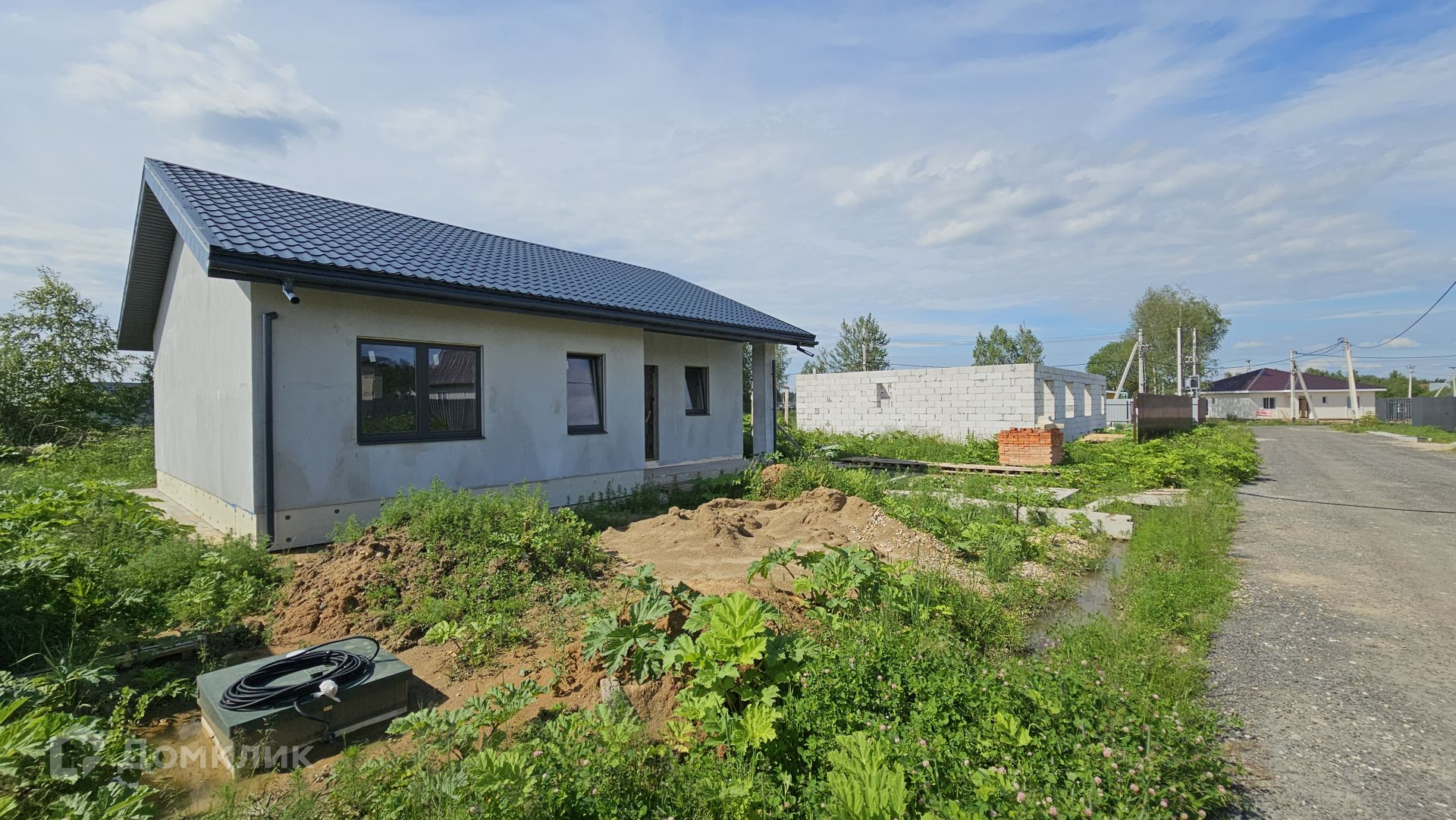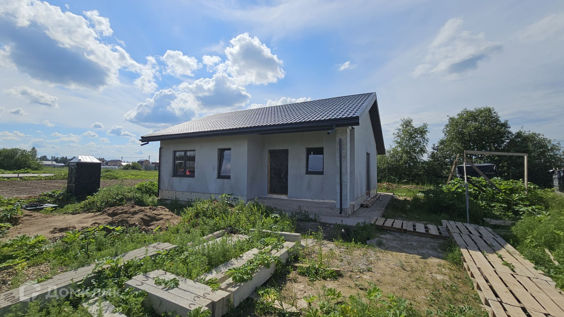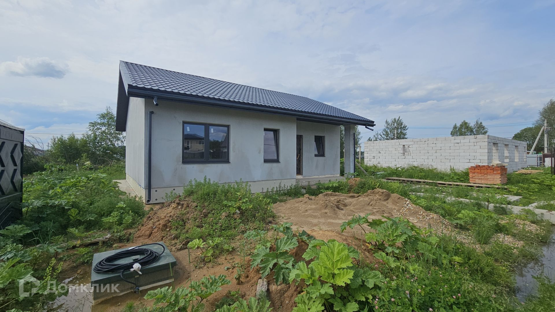 Сам дом выполнен из газоблока 400 мм, полностью отделан снаружи. Фундамент - монолитная плита, есть отмостка. Крыша Уникма - металлочерепица. Окна - качественные теплые стеклопакеты от фабрики окон (лучшие производители), панорамные в гостиной. Высота потолка 3,20 м.