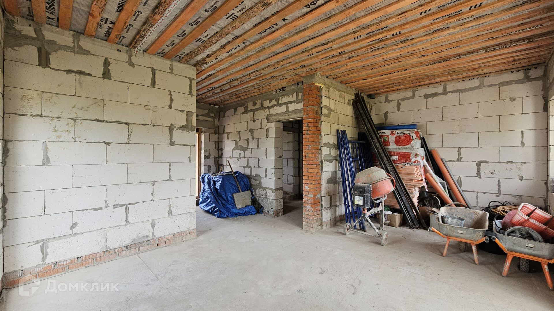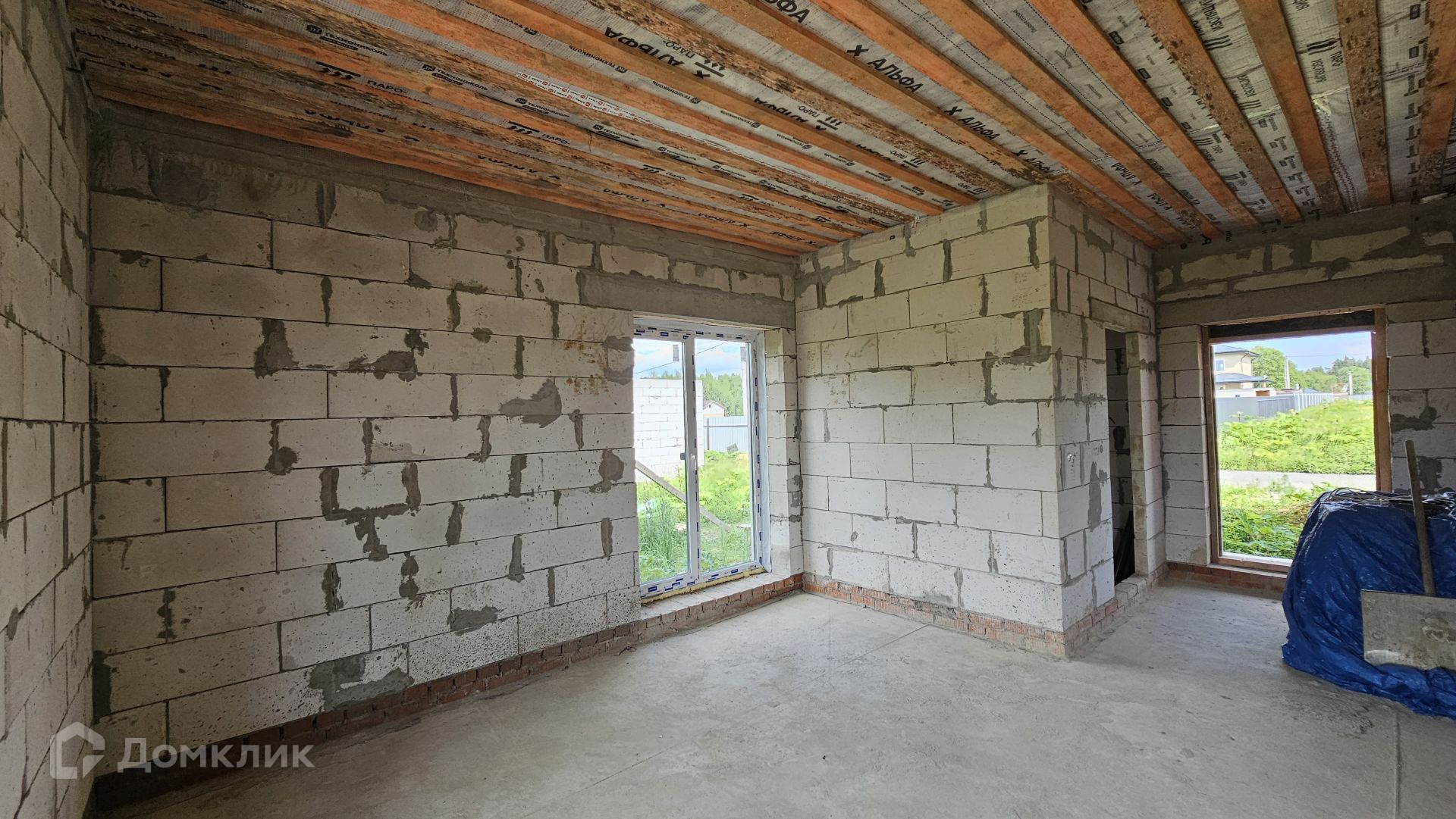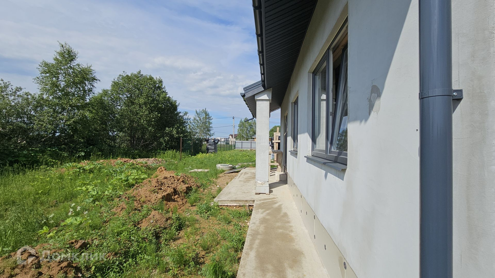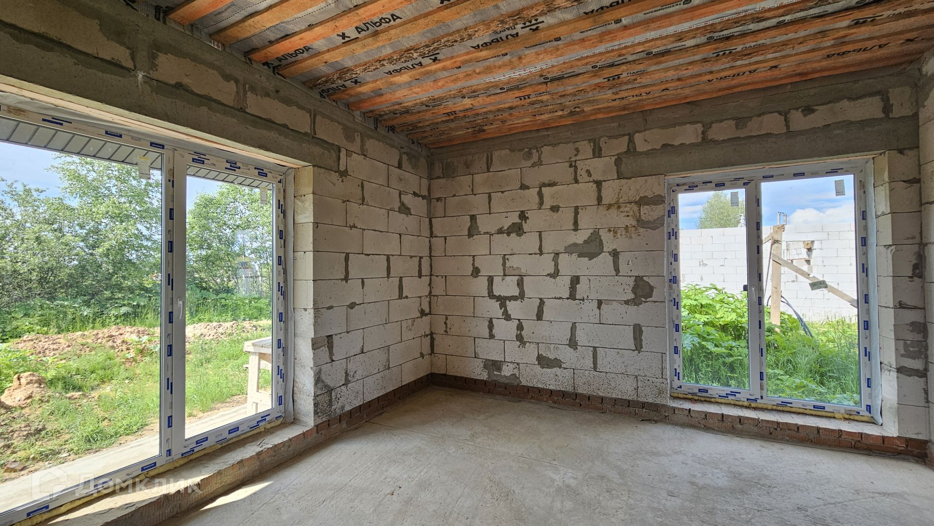 Сам дом выполнен из газоблока 400 мм, полностью отделан снаружи. Фундамент - монолитная плита, есть отмостка. Крыша Уникма - металлочерепица. Окна - качественные теплые стеклопакеты от фабрики окон (лучшие производители), панорамные в гостиной. Высота потолка 3,20 м.