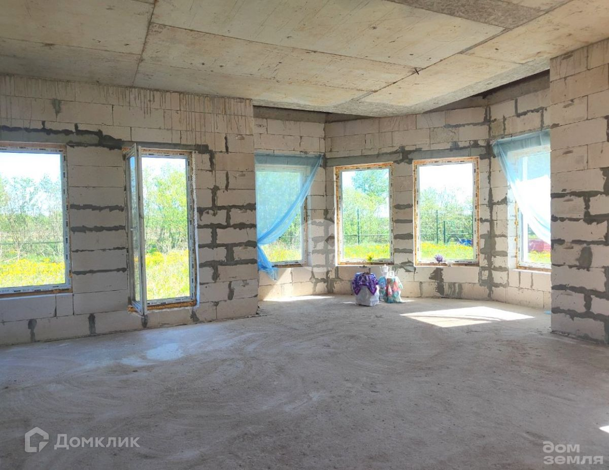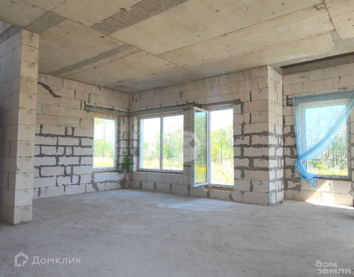 Материал: Газобетон 400 мм, фундамент - ж/б плита 300 мм с тепло-гидро изоляцией, крыша металлопрофиль. Перекрытия железобетонная плита 160 мм. Черновая отделка.