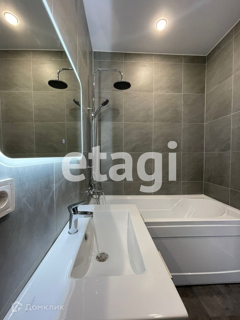 Санузел полностью оборудован: ванная, унитаз, раковина. Подготовлено место под стиральную машину (подведены вода и канализация, установлены розетки)