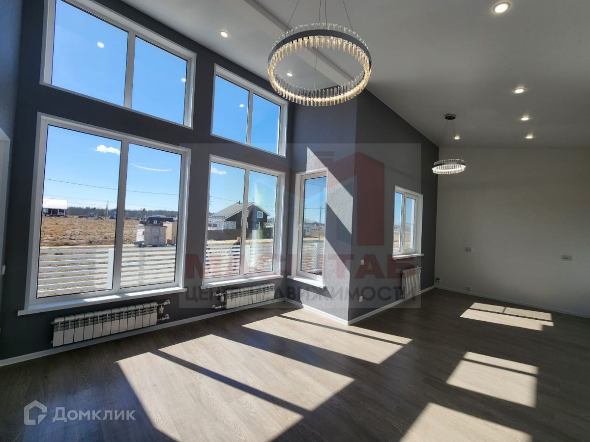 Коттедж построен по индивидуальному проекту! Стоит на бетонных сваях, стены каркасные с утеплением 150 мм, кровля - металлочерепица.  Установлены качественные окна (двухкамерные), входная металлическая дверь! Внутренняя отделка - обои, полы во всём доме - ламинат + плитка! Отопление дома - электрический котел с системой умный дом и удобным дистанционным управлением через смартфон! Высота потолков 2,7 м, в зоне гостиной – до 4,0 м.
