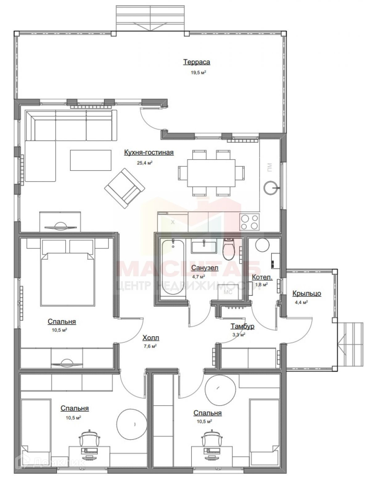 - просторная кухня-гостиная 25,4 кв.м.,