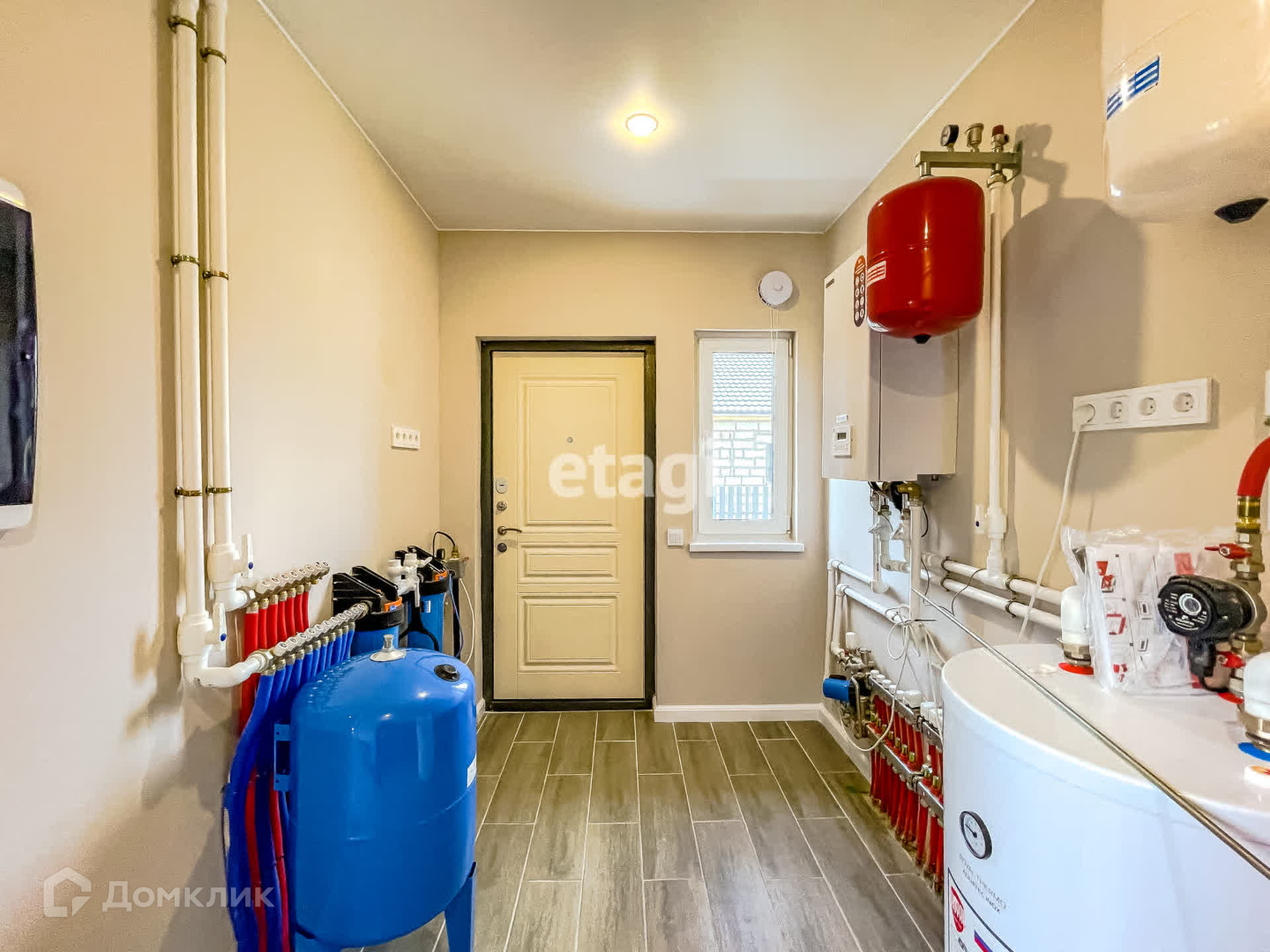 Отопление дома осуществляется за счет системы теплого пола по всему периметру с датчиками контроля температуры.