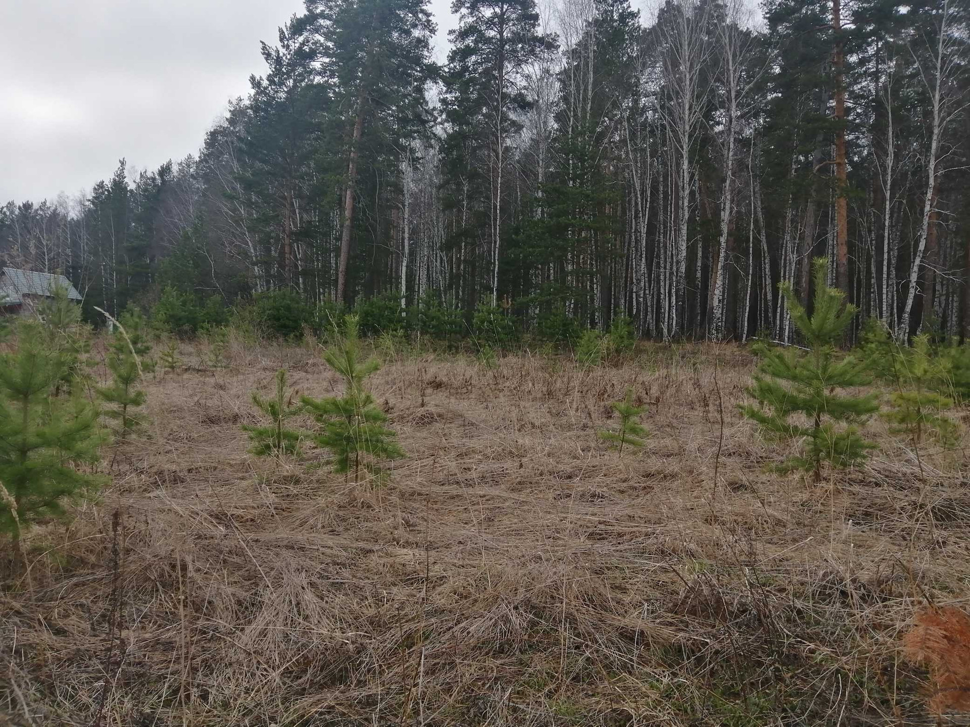 10 соток земли правильной формы, задняя граница участка выходит в лес.