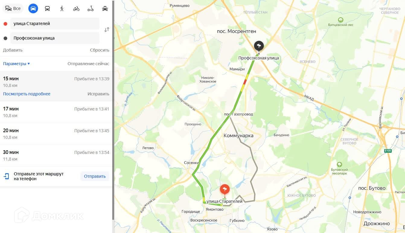 - м. Коммунарка находится в 25мин пешком;