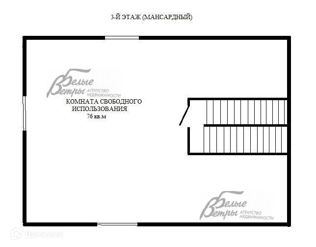 3-ий этаж: мансарда - помещение свободного назначения 76 кв.м с вертикальным окнами (3 шт.).
