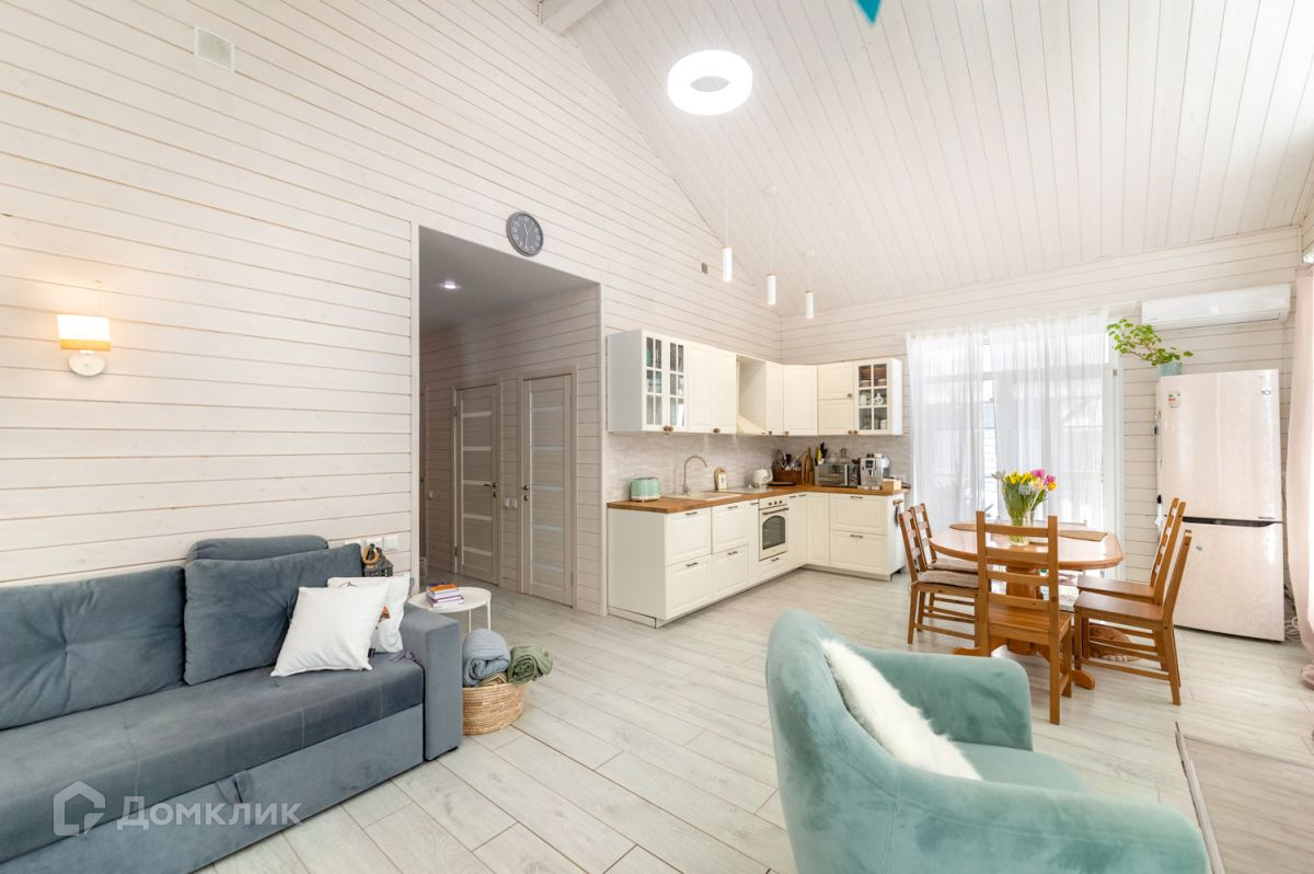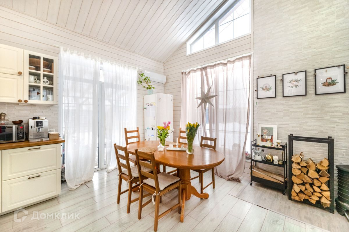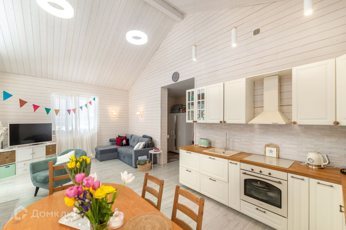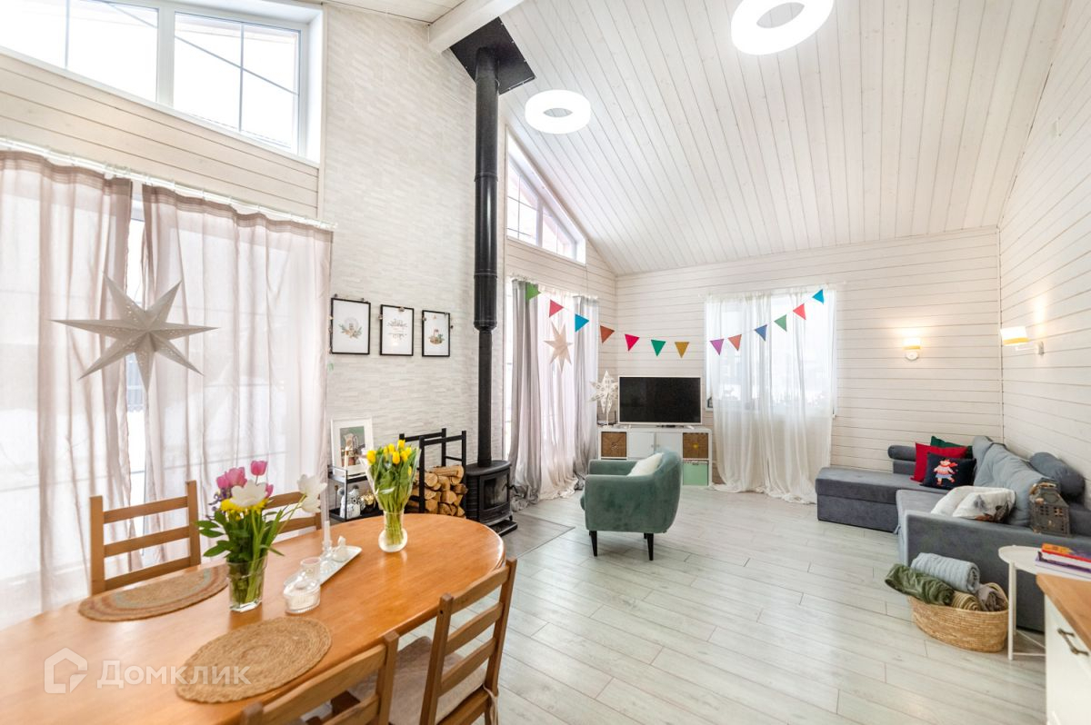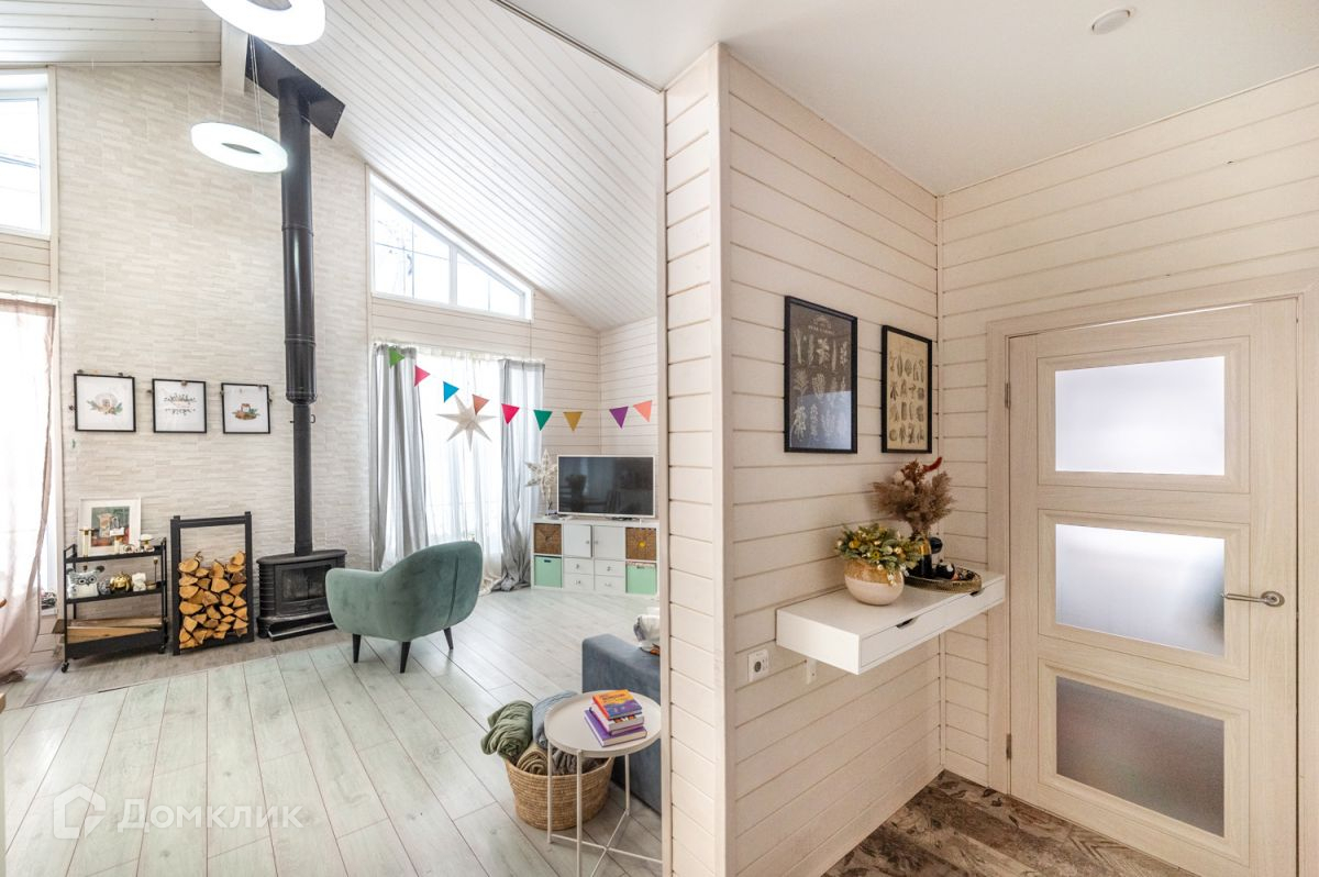 Просторная кухня-гостиная-столовая с большим панорамным окном, откуда открывается вид на участок. Спальная комната, две детских комнаты, холл, котельная, санузел с душевой, гостевой туалет. Для уютных вечеров в доме организован дровяной камин.