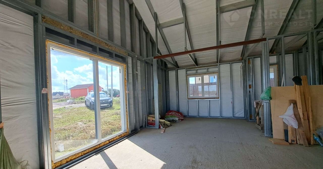 Дoм. Кaркас домa из лёгкиx cтальных конструкций, утеплитель каменная вата, кровля - металлочерепица.