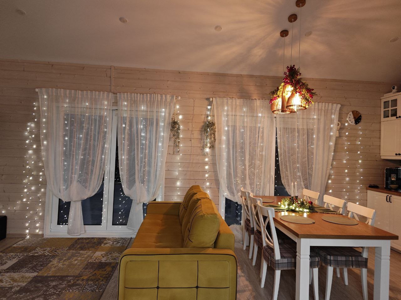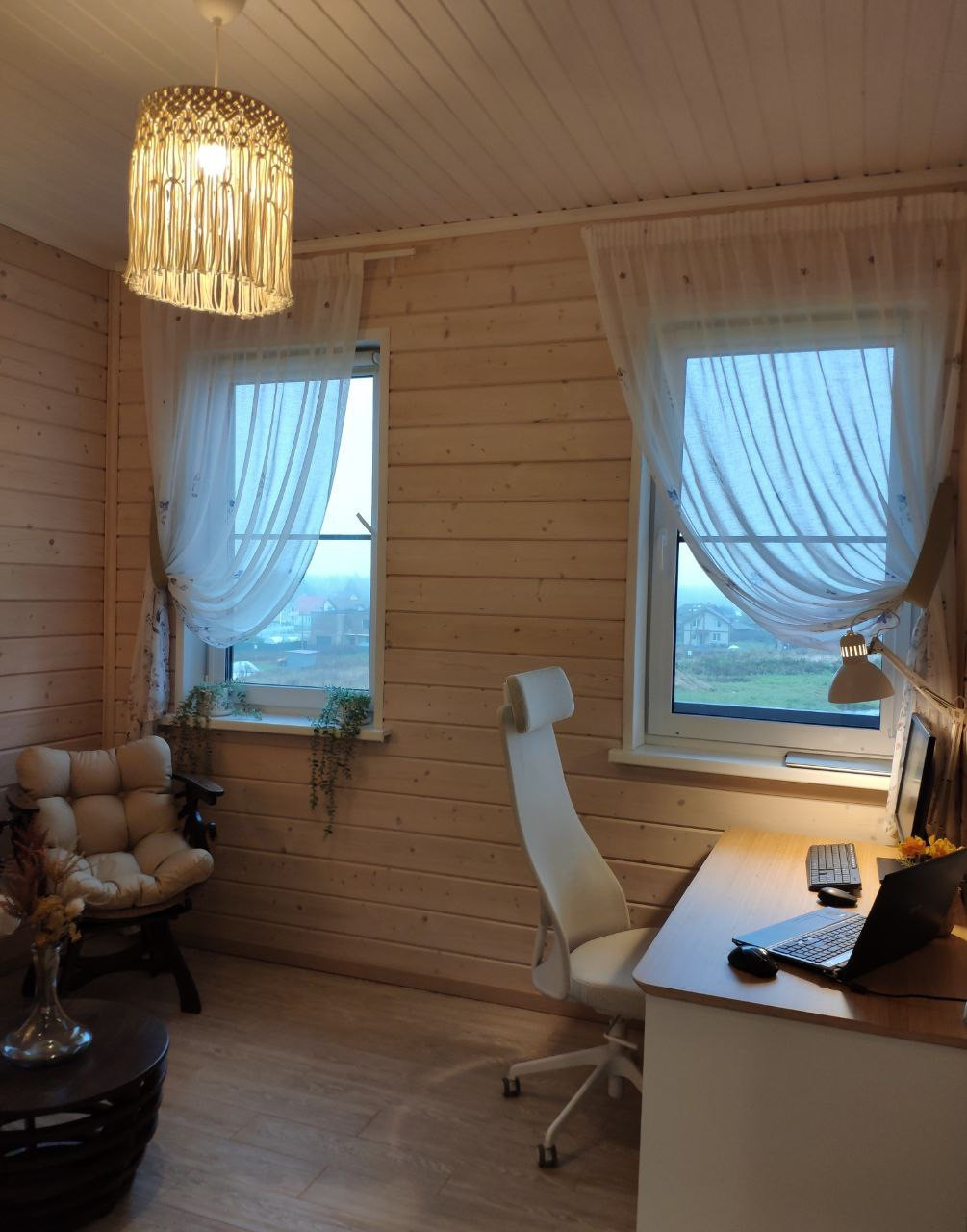 - планировка дома позволяет с комфортом разместиться нескольким поколениям семьи : на первом этаже, кухня-гостиная со вторым светом, санузел, вместительная гардеробная и хозблок; на втором этаже две спальни с высокими потолками и панорамным остеклением. Убранство дома подобрано с изысканным вкусом и любовью.