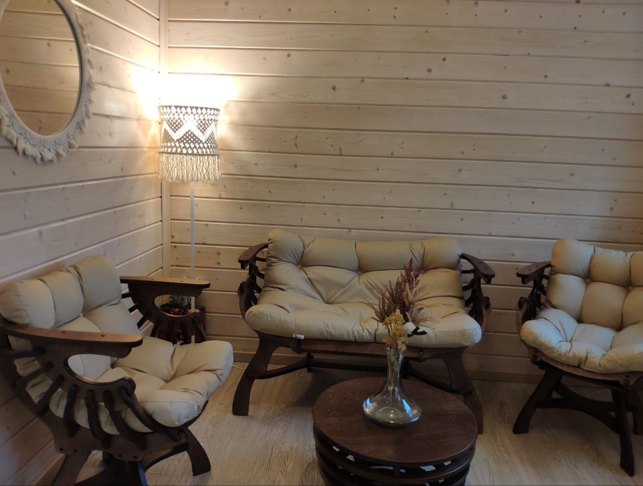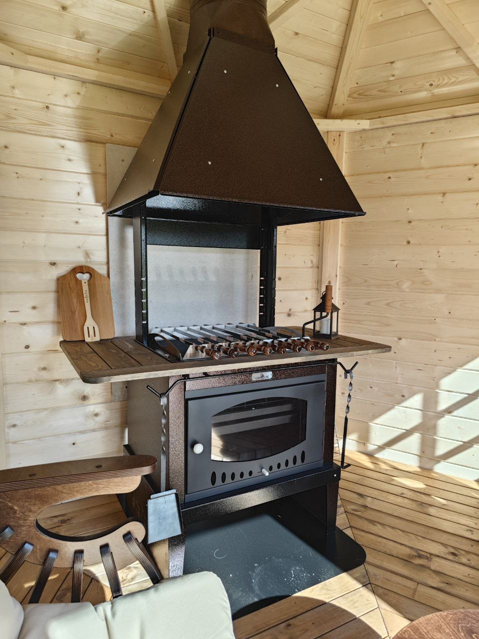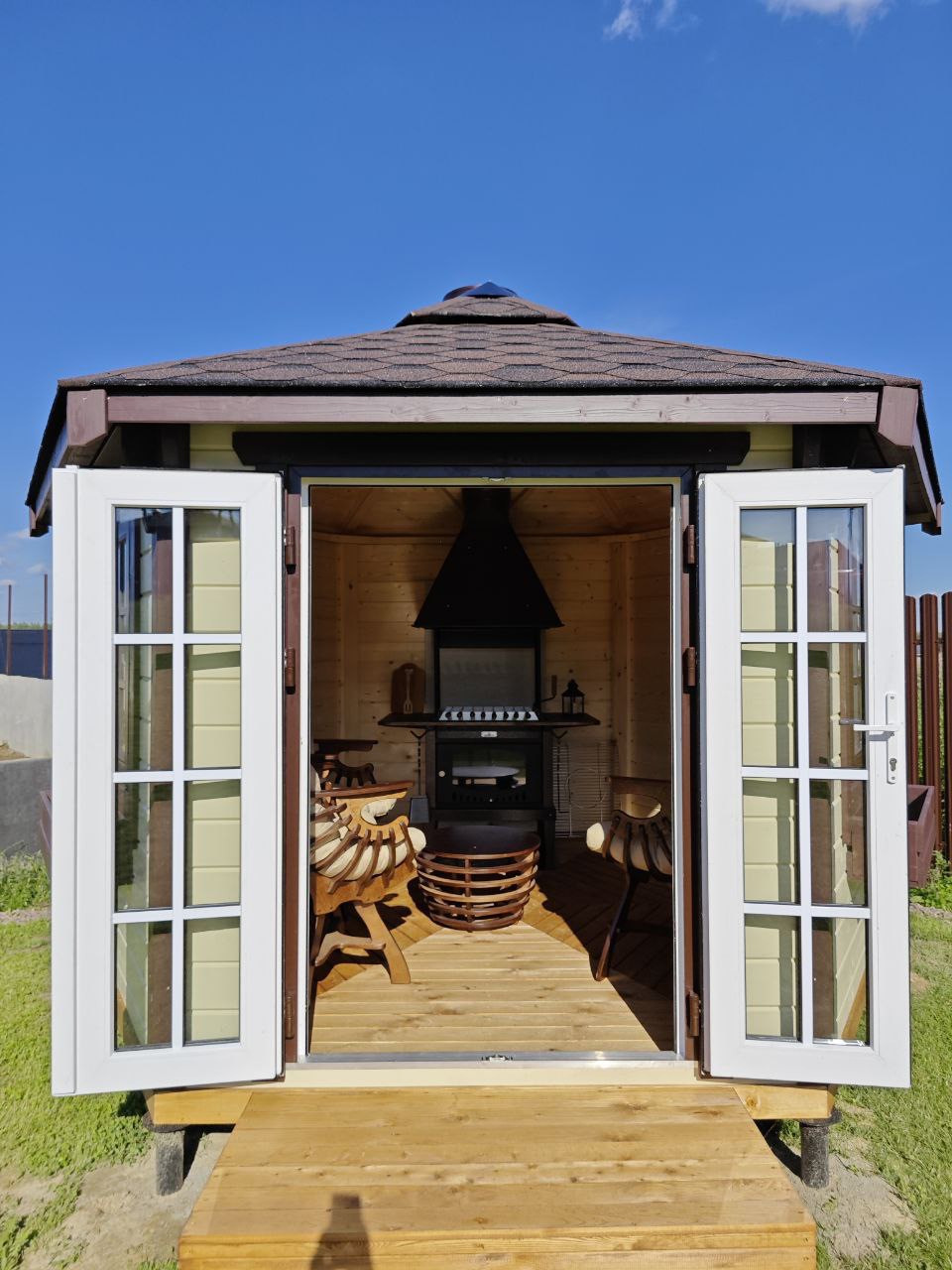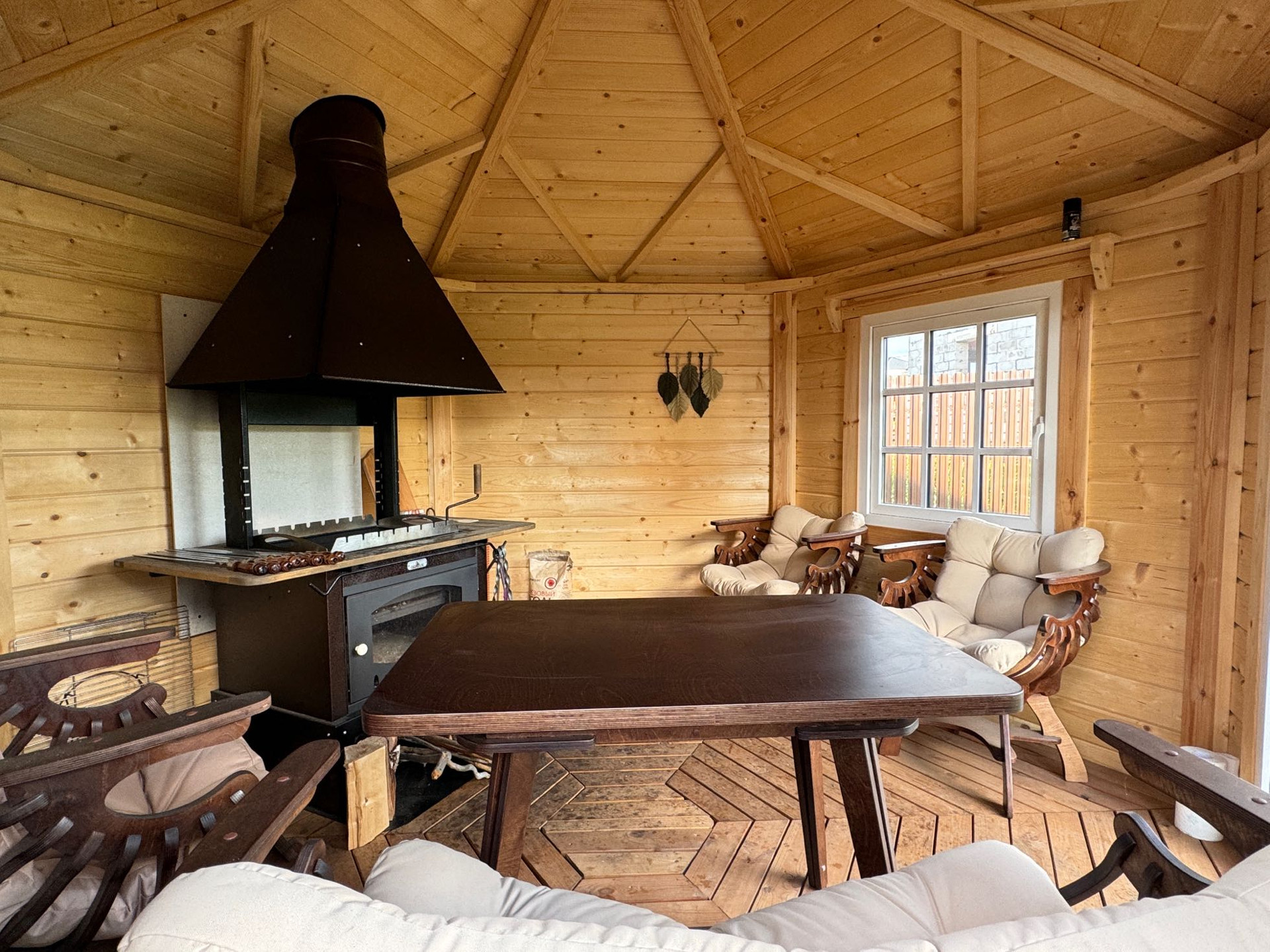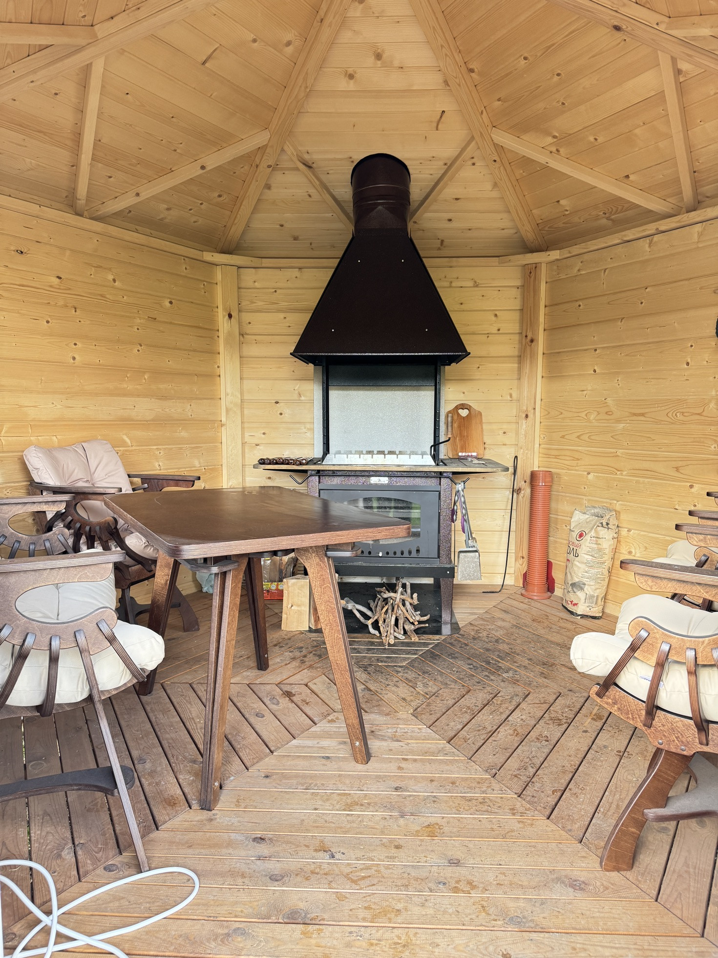 - Вишенка на торте- беседка в Петровском стиле, с зоной барбекю и изысканной деревянной мебелью, уютная и солидная;