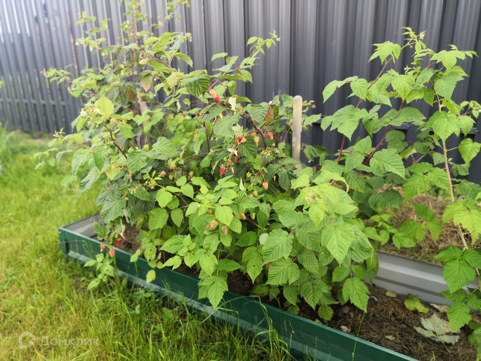 Есть парковочное место на 2 машины. Участок имеет комбинированное ограждение из штакетника с фасадной части участка, выровненную поверхность и облагорожен газонной травой. На участке имеются плодовые деревья, кустарники малины и крыжовника.
