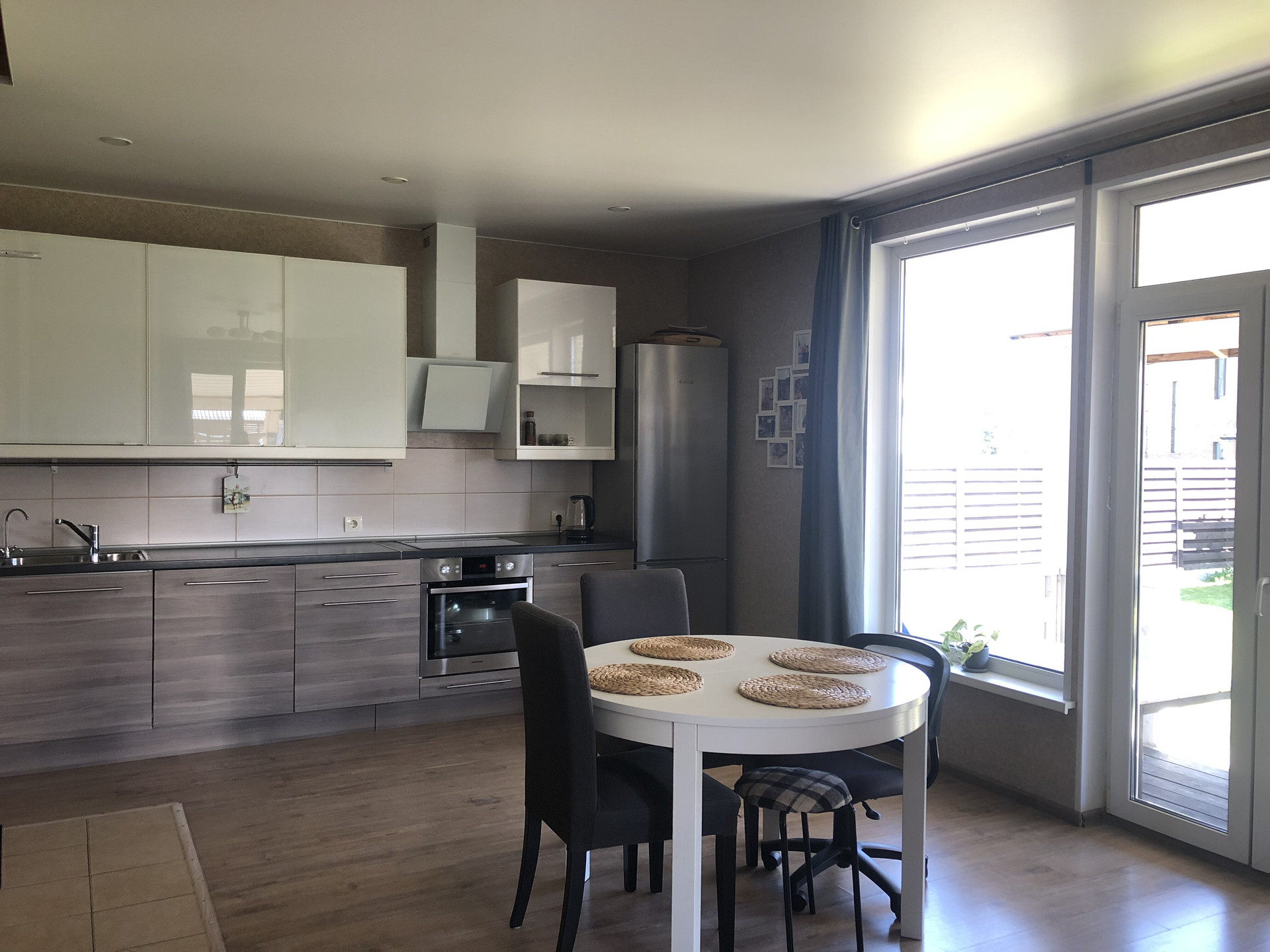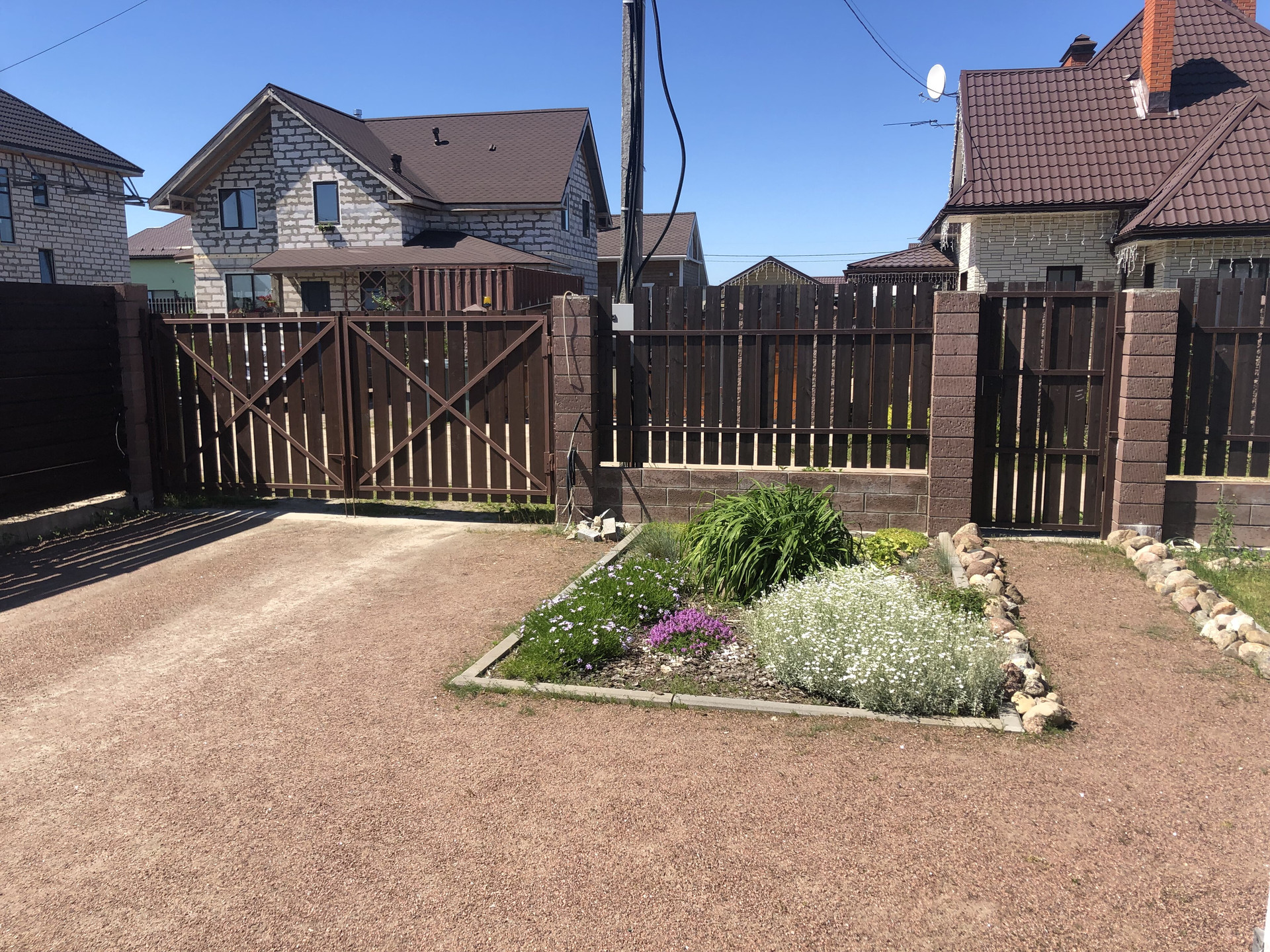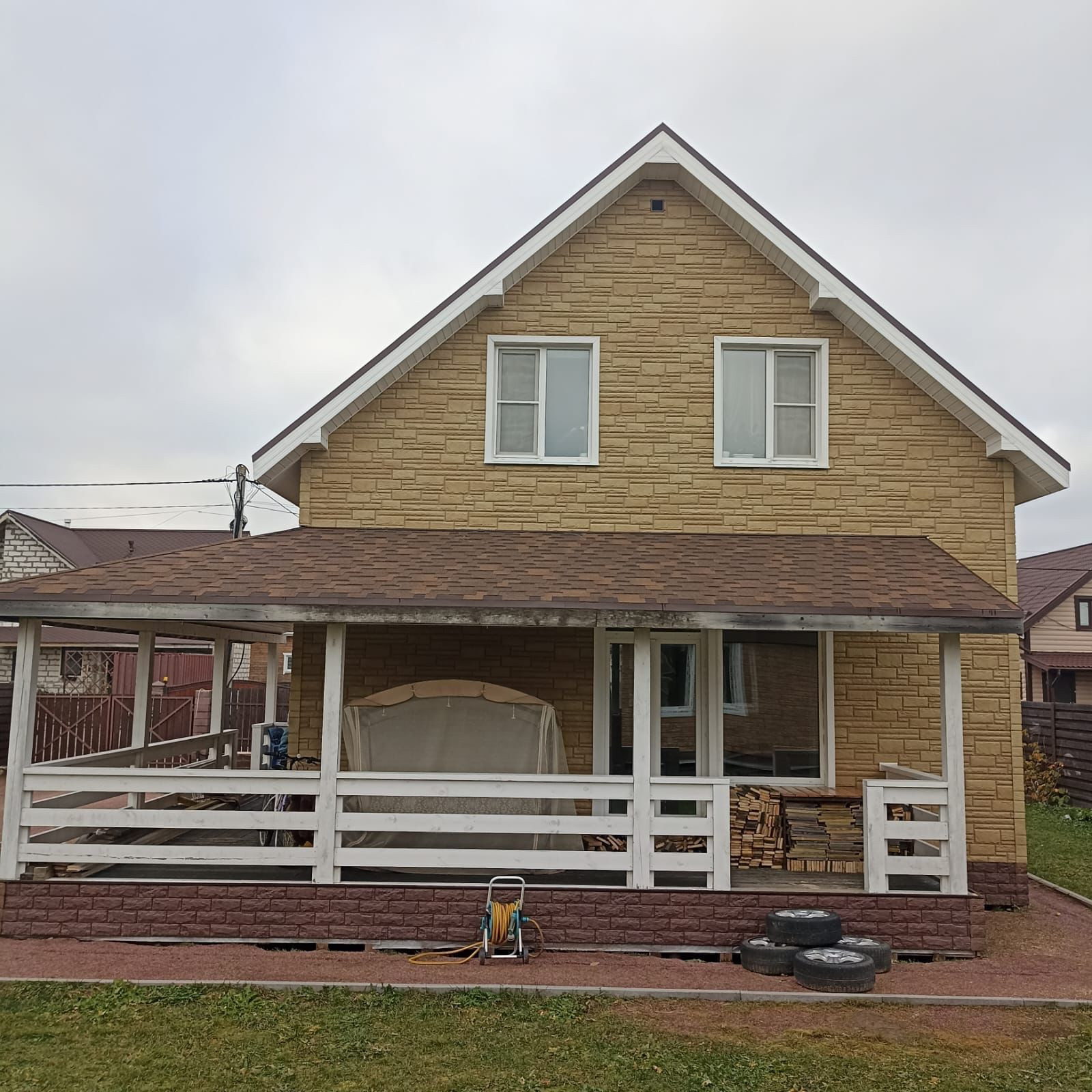 Веранда на две стены дома с возможностью остекления и утепления. Во дворе два вывода воды для мойки автомобилей и для участка. Во дворе плодовые деревья, кустарники, цветы и прочие посадки.