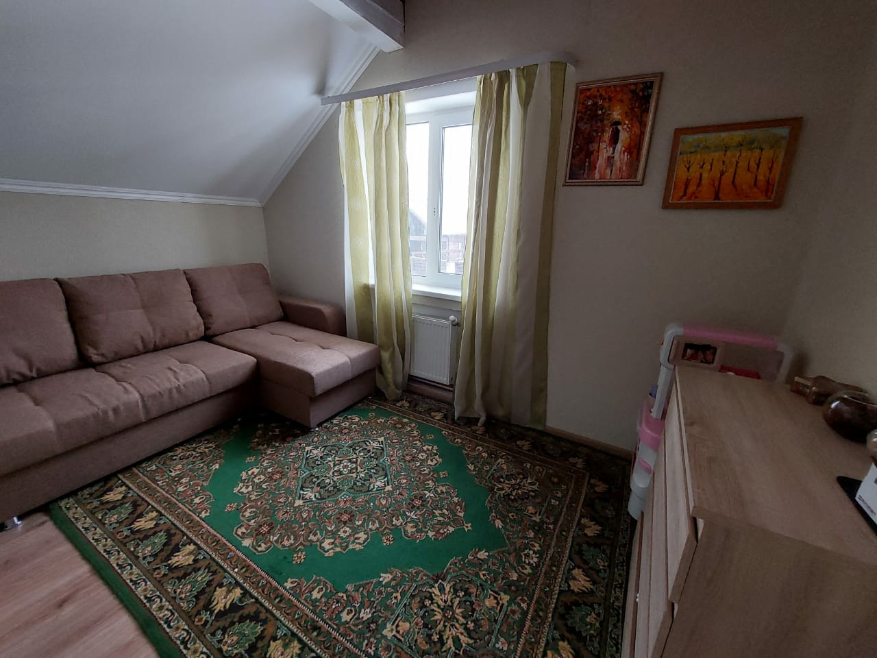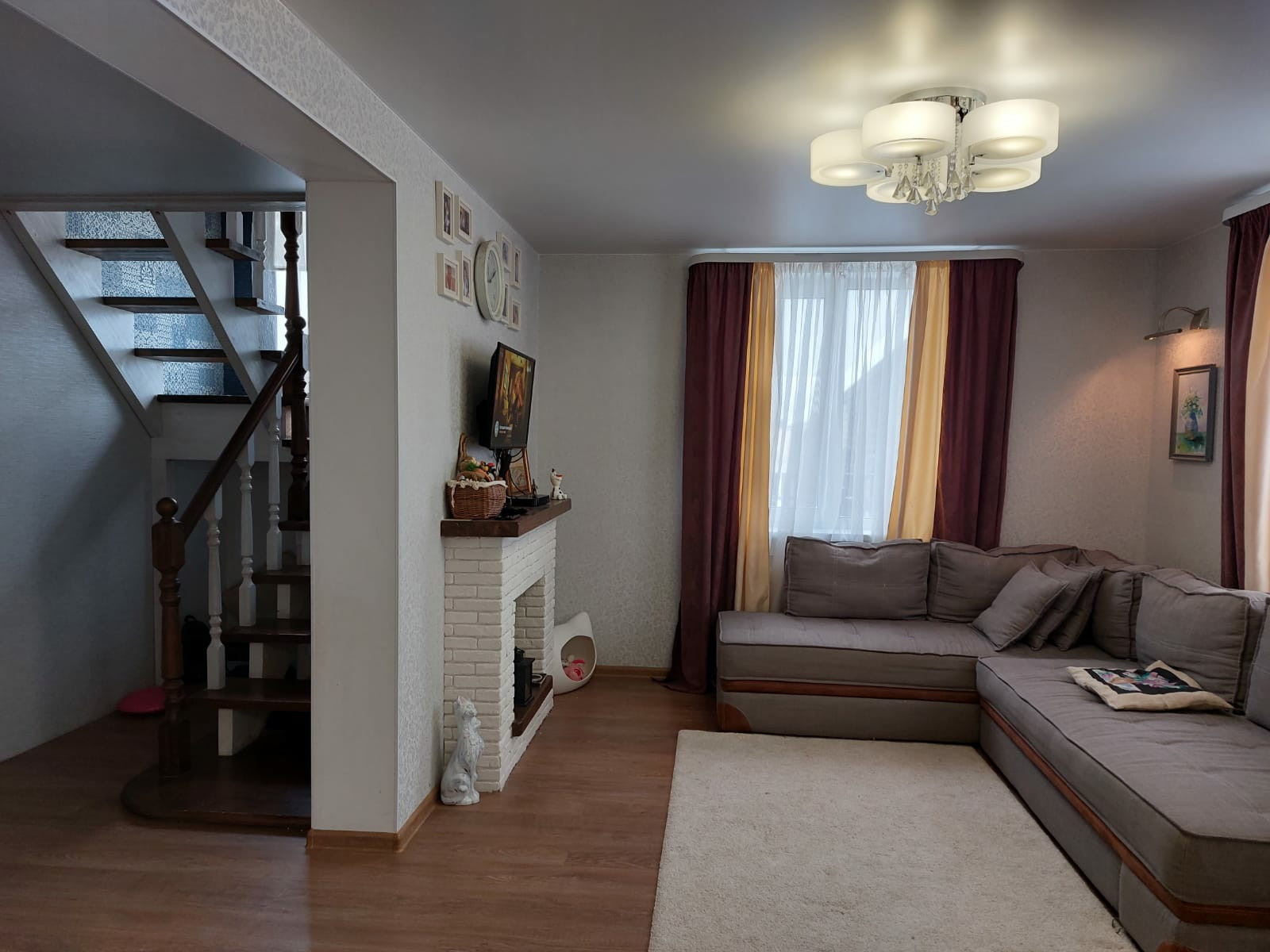 5 комнат, из них: 3 спальни на втором этаже, а также большая кухня-гостиная и кабинет - на первом;