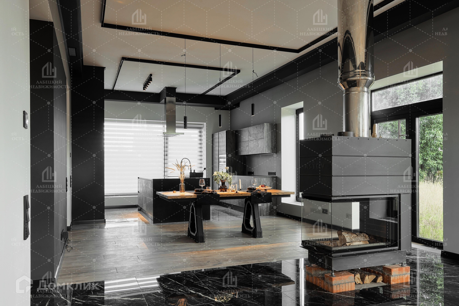 Во всем доме панорамные АЛЮМИНИЕВЫЕ ОКНА В ПОЛ с внутрипольными конвекторами.