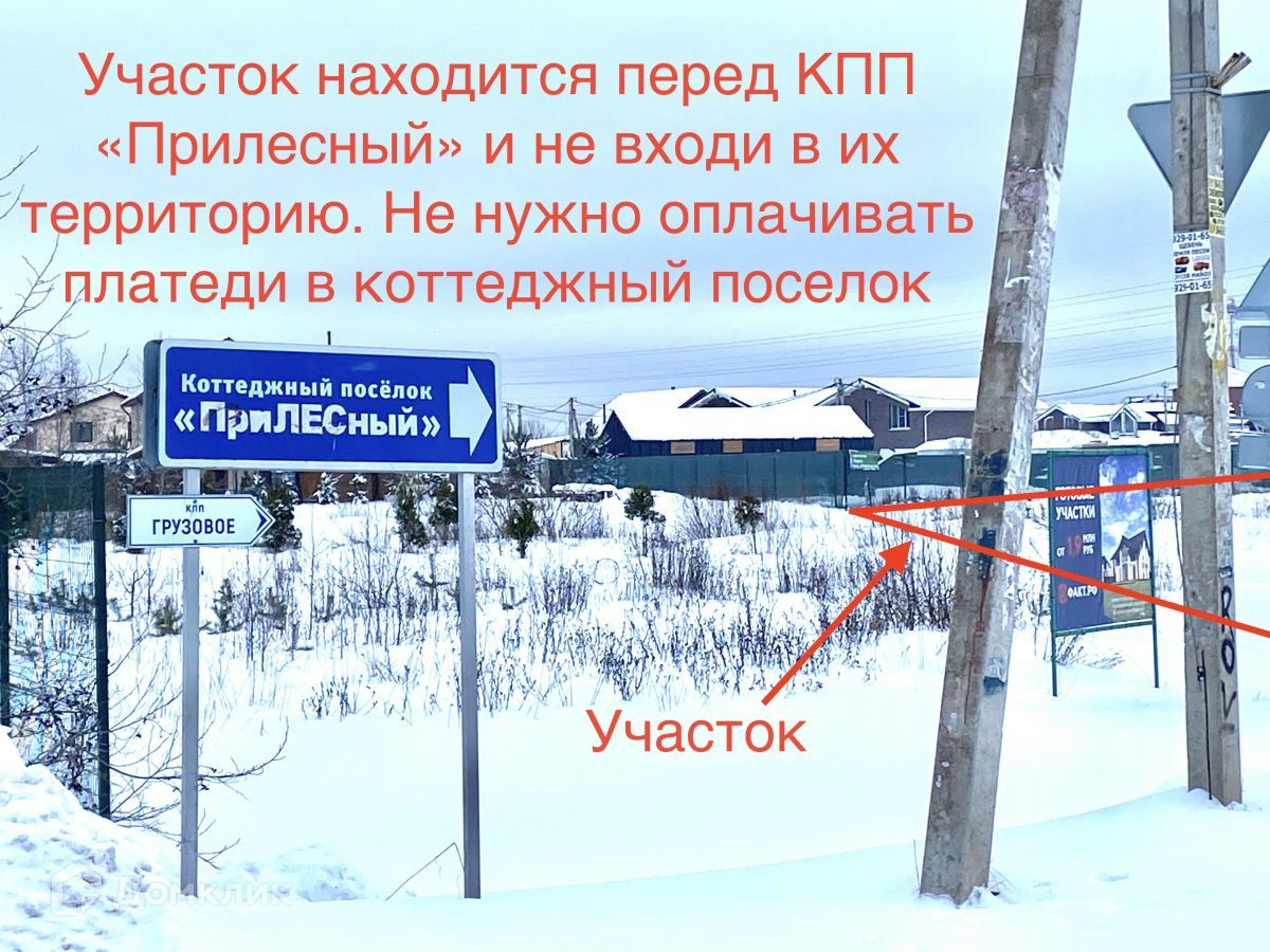 Между основной дорогой и участком, располагается рекреационная территория, она гарантирует отсутствие застройки и шума от проезжающих машин. Отсутствуют членские сборы, так как участок находится за территорией коттеджного поселка,