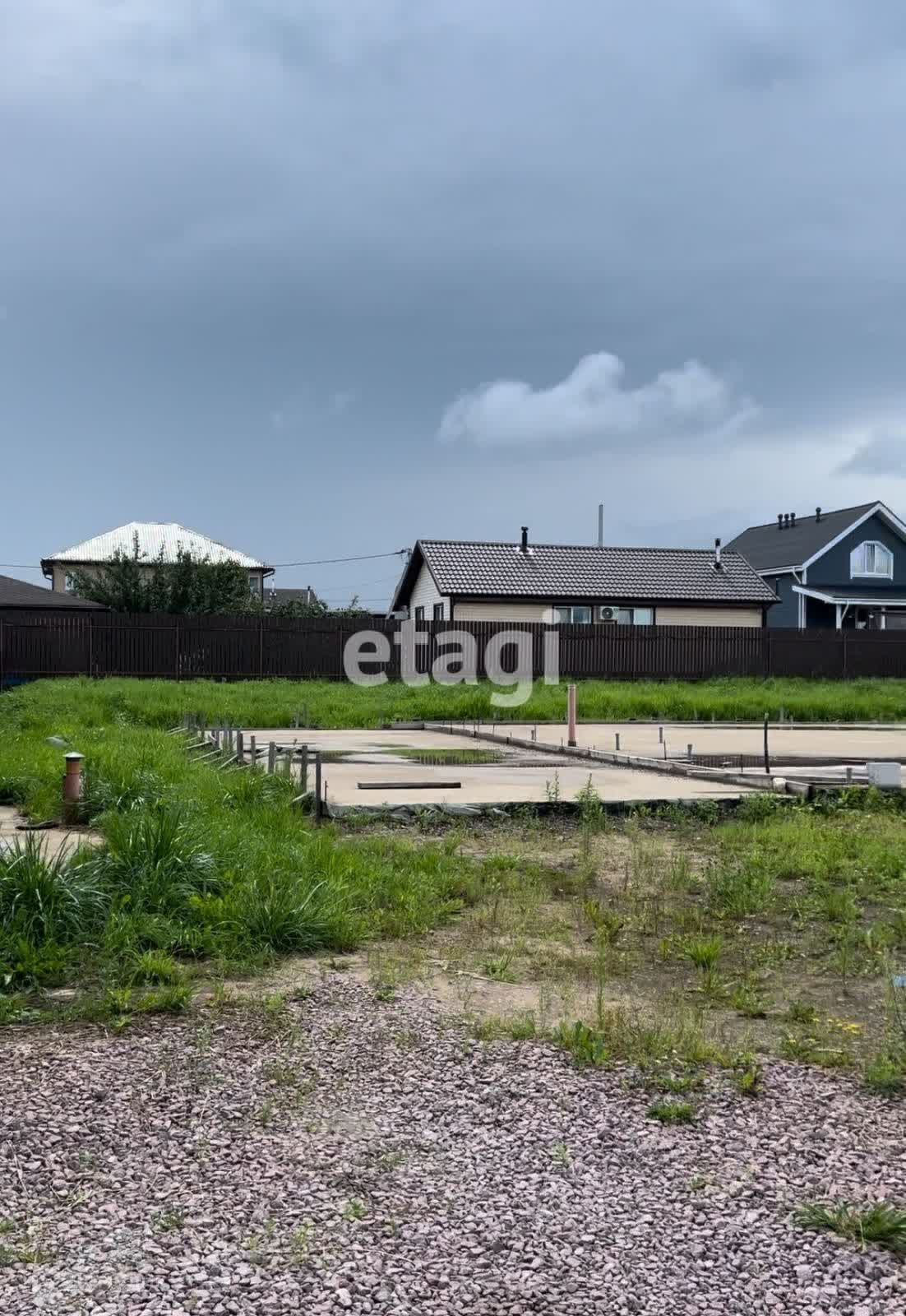 Сдeлана подушкa под фундамент, зaлитa плита 17 на 18, включaя гараж - 3 метра. В фундаменте сделана сантехническая разводка (есть готовый план одноэтажного дома с 3-мя спальнями, с просторной кухней-гостиной и выходом на большую террасу, 2-мя санузлами и 3-мя подсобными помещениями).