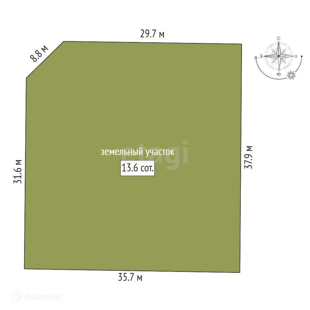 Площадь участка 13.6 сот.
