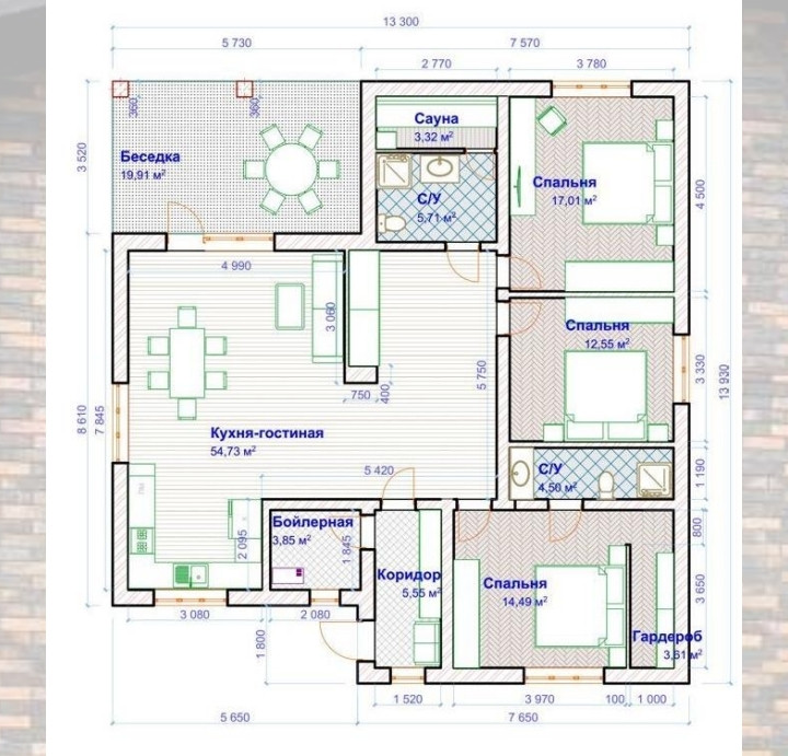 • Одноэтажный дом 147 м2