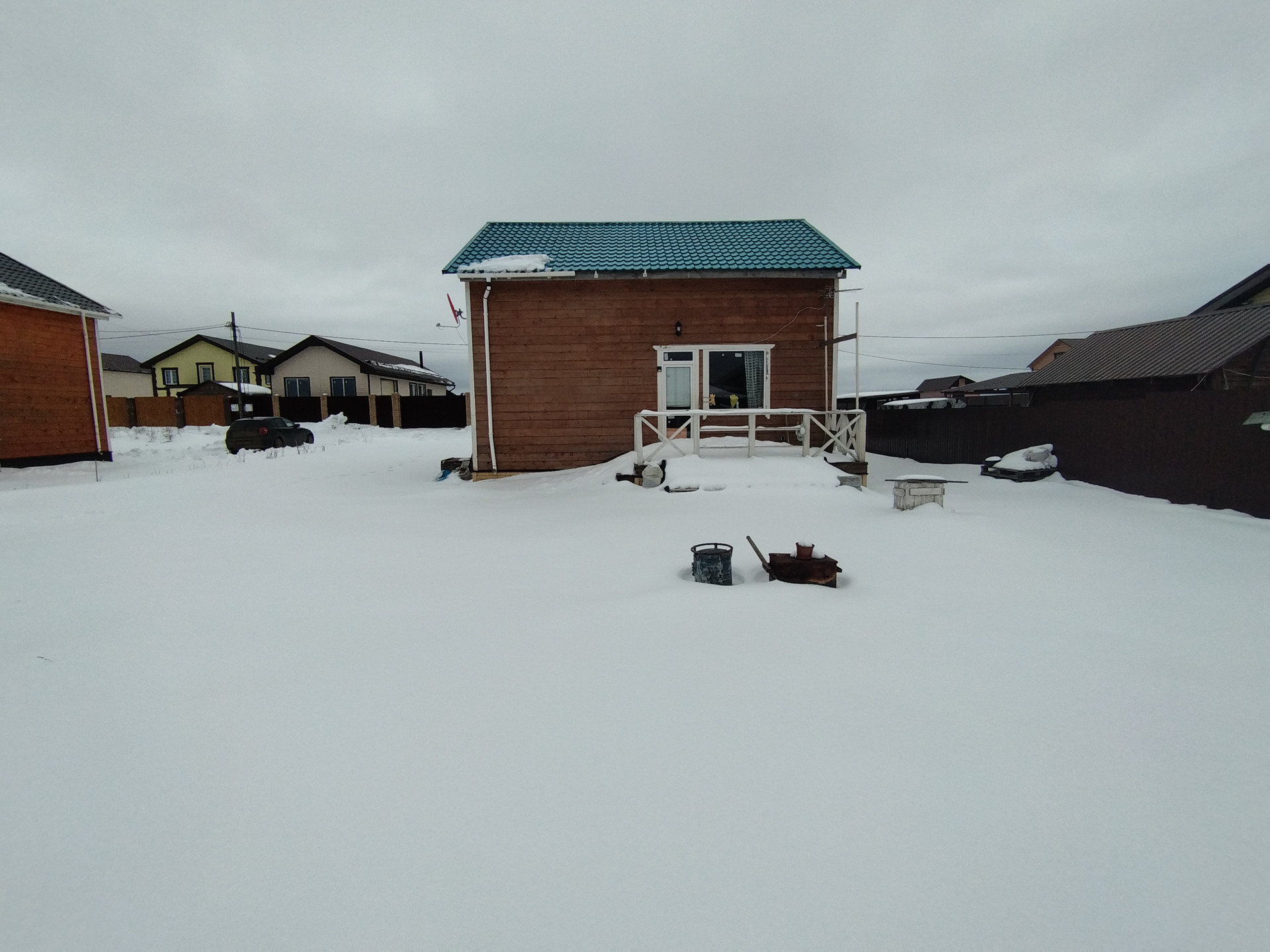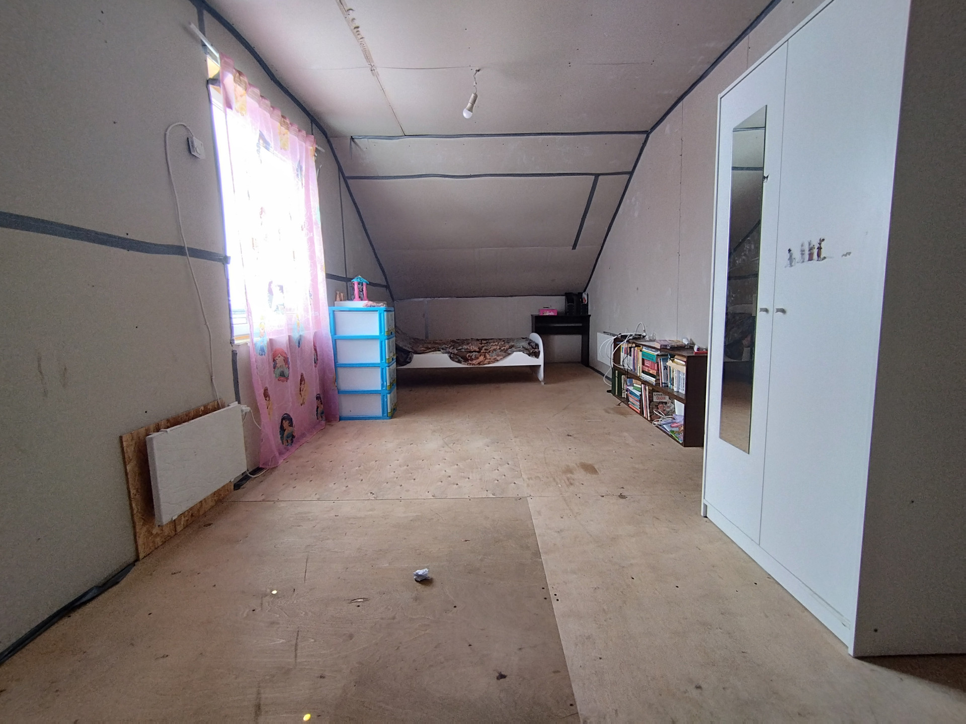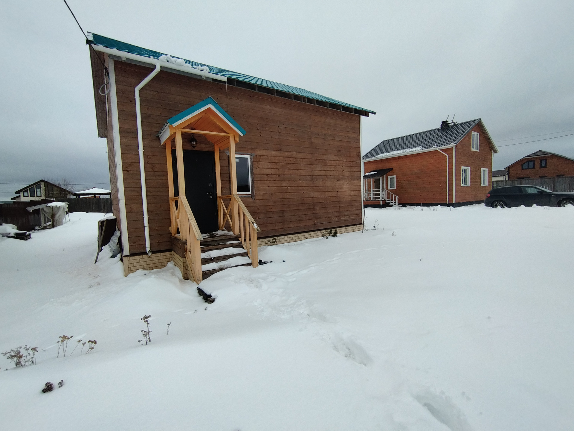 На первом этаже располагаются: прихожая, совмещённый сан. узел, просторная кухня-гостиная с выходом на террасу, жилая комната. На втором две просторные комнаты. Общая площадь: 102.9 кв. м., комнаты 9.3кв. м.+20.4 кв. м.+23.1 кв. м., кухня-гостиная 28.6 кв. м. Дом каркасный, фундамент сваи, крыша металлочерепица. Коммуникации: скважина (25 м + кабель обогрева), канализация- кольца (по три кольца), электричество 10 КВ т.