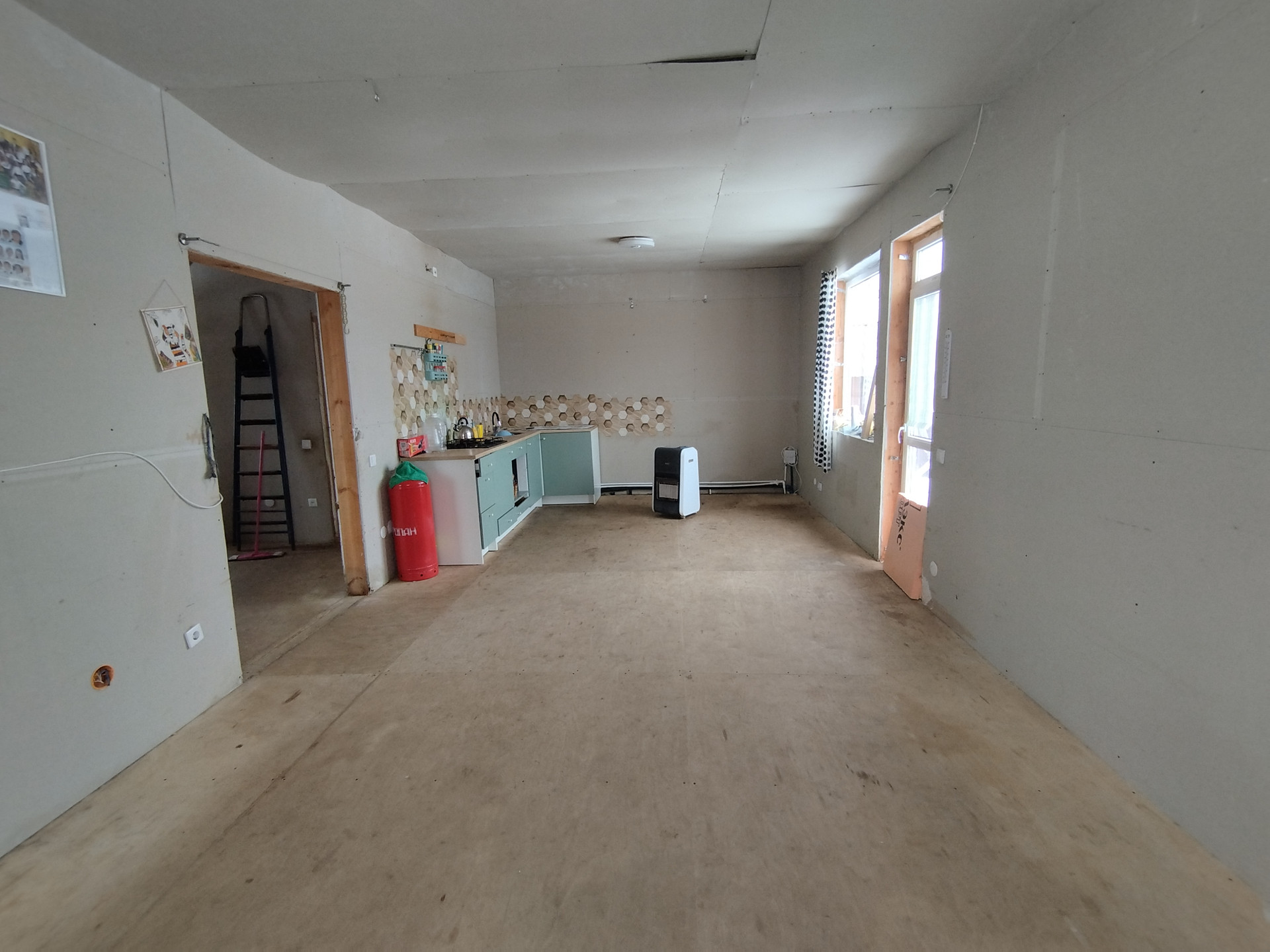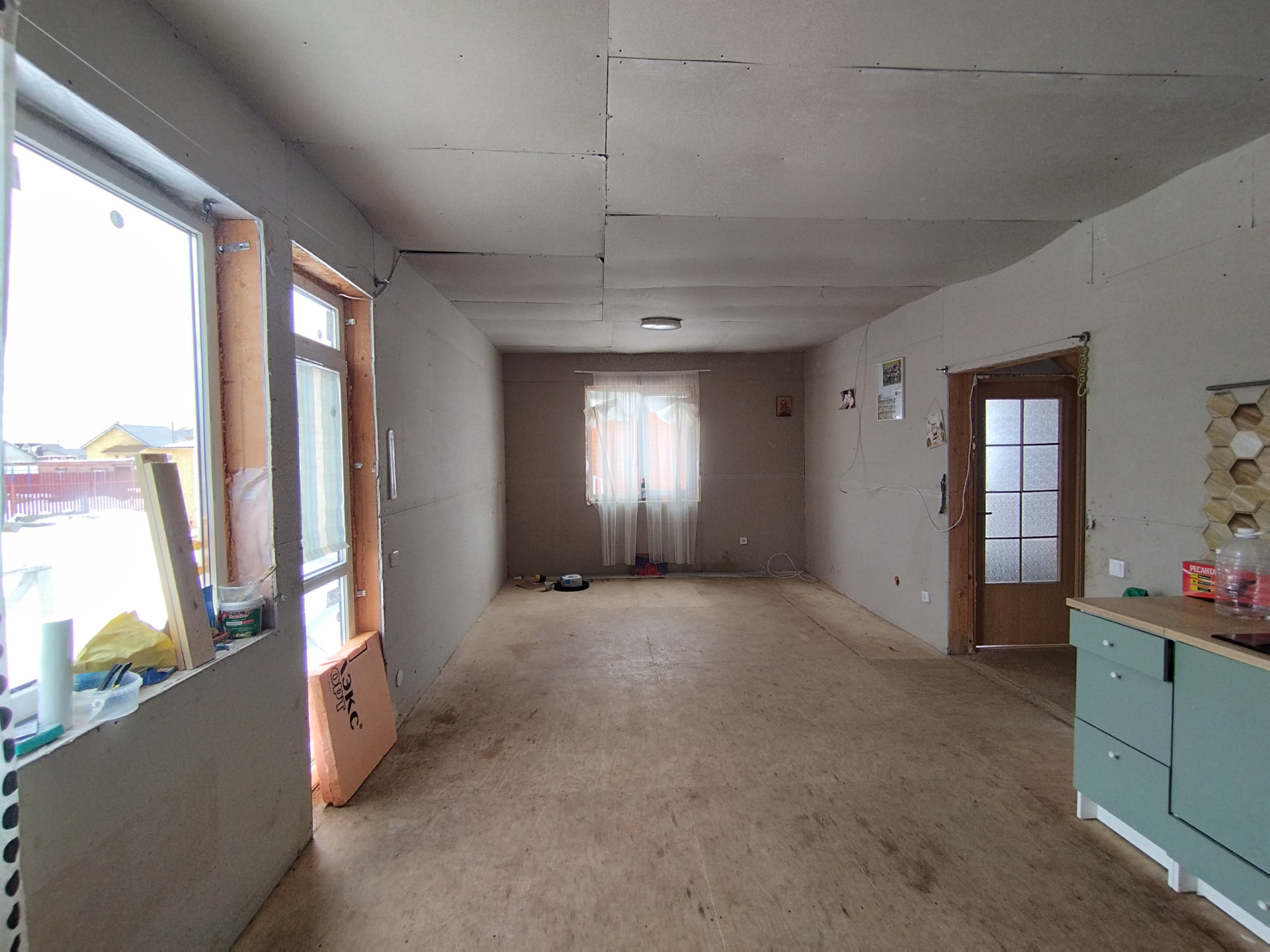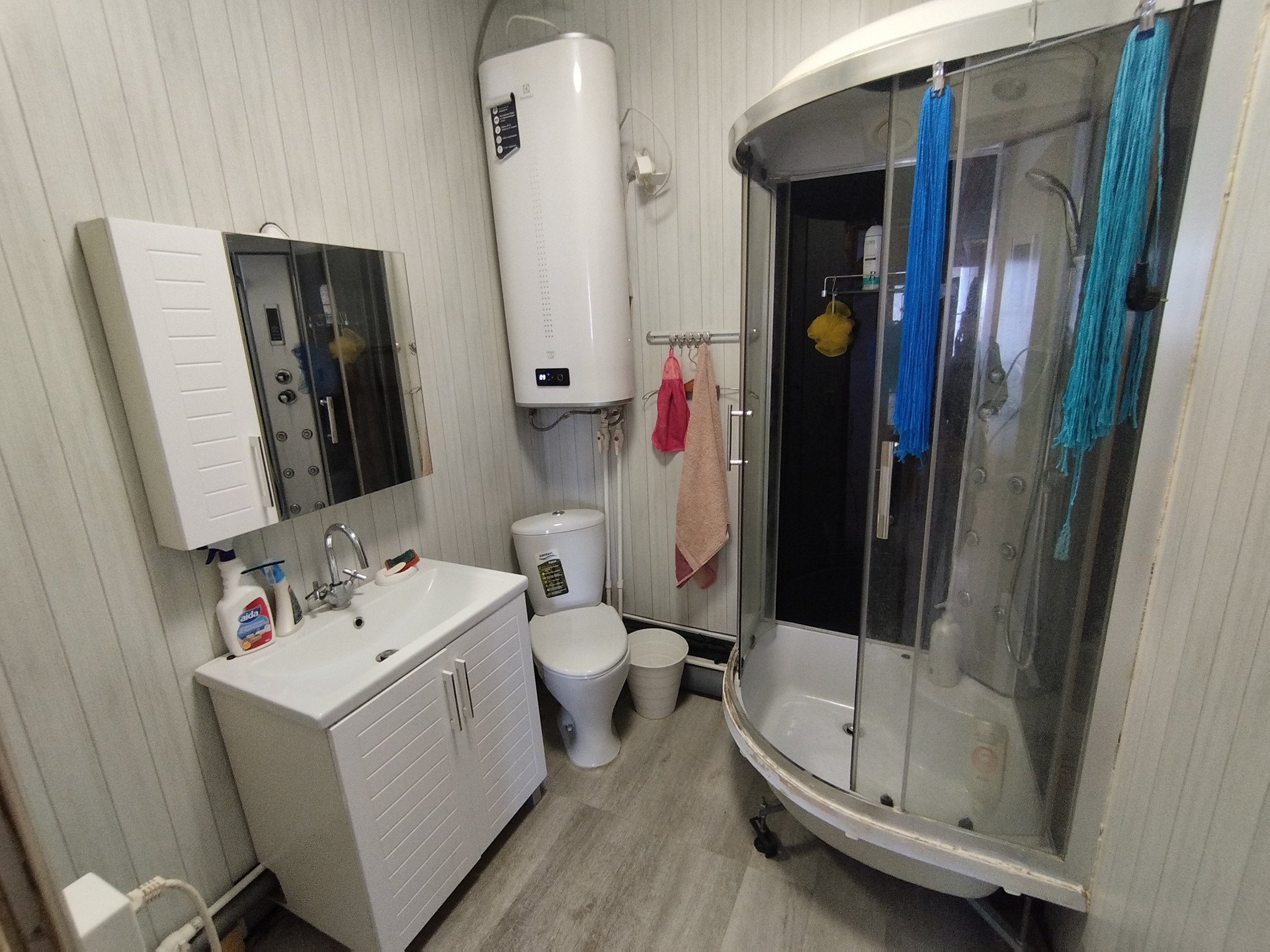 На первом этаже располагаются: прихожая, совмещённый сан. узел, просторная кухня-гостиная с выходом на террасу, жилая комната. На втором две просторные комнаты. Общая площадь: 102.9 кв. м., комнаты 9.3кв. м.+20.4 кв. м.+23.1 кв. м., кухня-гостиная 28.6 кв. м. Дом каркасный, фундамент сваи, крыша металлочерепица. Коммуникации: скважина (25 м + кабель обогрева), канализация- кольца (по три кольца), электричество 10 КВ т.