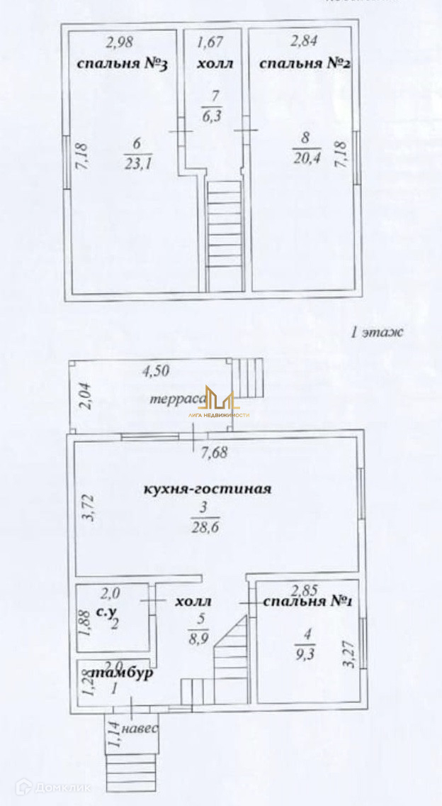 2 Этаж - 2 комнаты, холл.