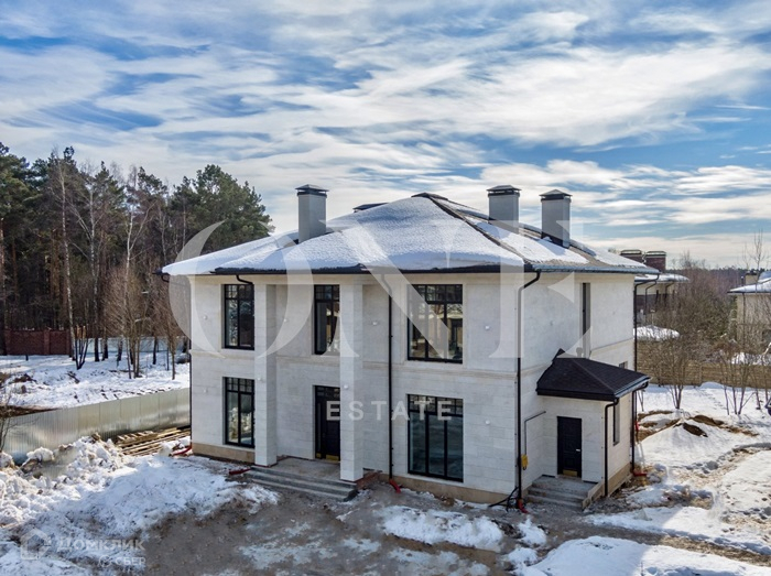 ID 5102: Новый дом 440 кв.м готовится под ключ расположен в охраняемом коттеджном поселке на участке 11,8 соток. Дом с отличной архитектурой и удобной планировкой. Каждая спальня имеет свой санузел и гардеробную, просторные комнаты, высокие потолки 3,70 м. Фундамент - армированная плита, стены - тёплая керамика (тёплый раствор, окна деревянные (лиственница), двери выполнены по индивидуальному проекту на заказ. Облицовка фасада из натурального камня (мраморированный известняк) 1 этаж холл, прихожая, спальня, гардероб, гостевой санузел, с/у, кабинет, гостиная, кухня с выходом на террасу, столовая с выходом на террасу, коридор. 2 этаж холл, гостевая комната, мастер-спальня с собственный санузлом, 2 спальни, 3 санузла, 2 гардеробных,