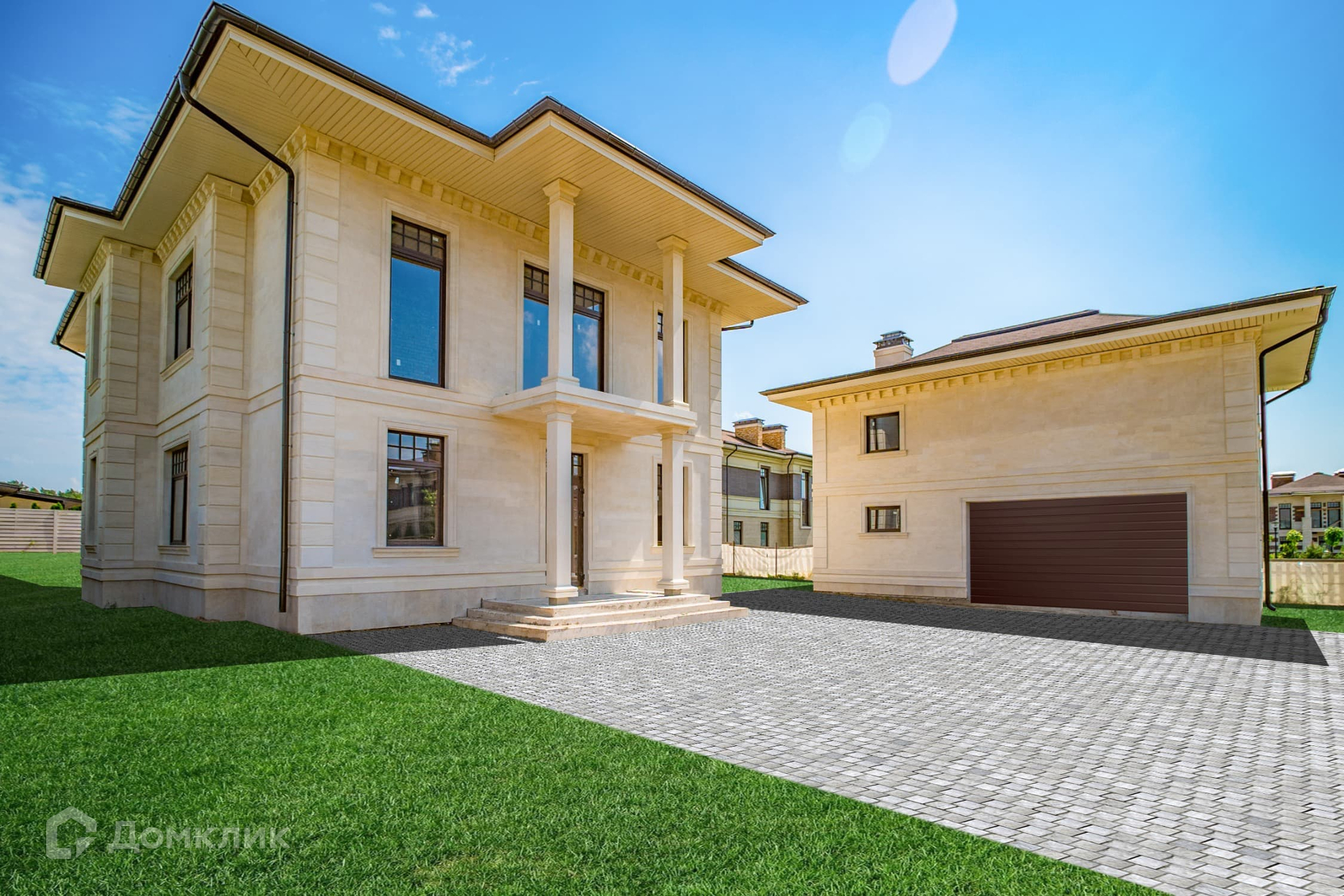 Фасад отделан натуральным камнем.