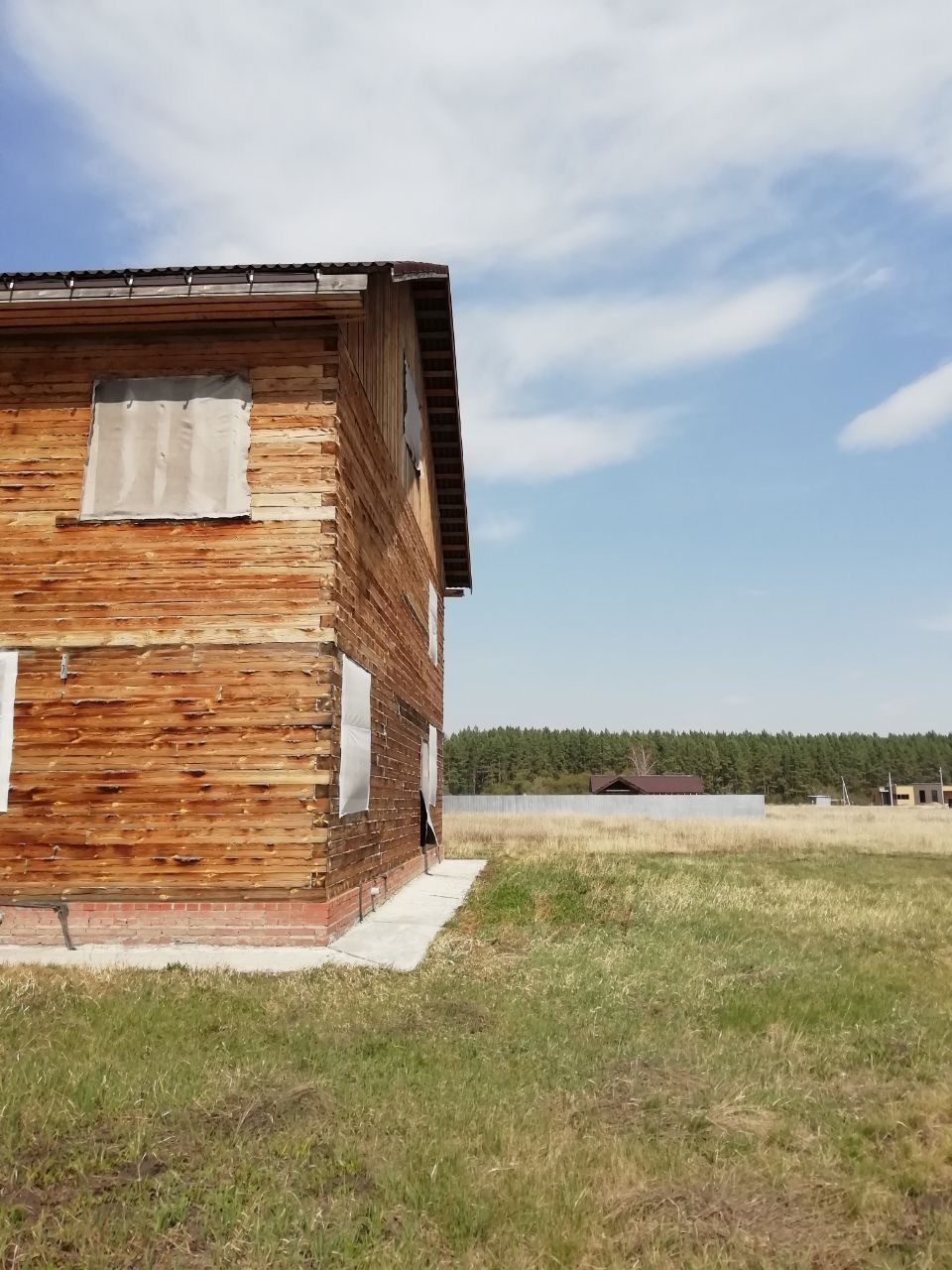 Дом построен на ровном участке, фундамент ленточный, стены дома- брус, кровля - ондулин, высота потолков 2.7 м. Из коммуникаций-водопровод, электричество. Возможен торг.