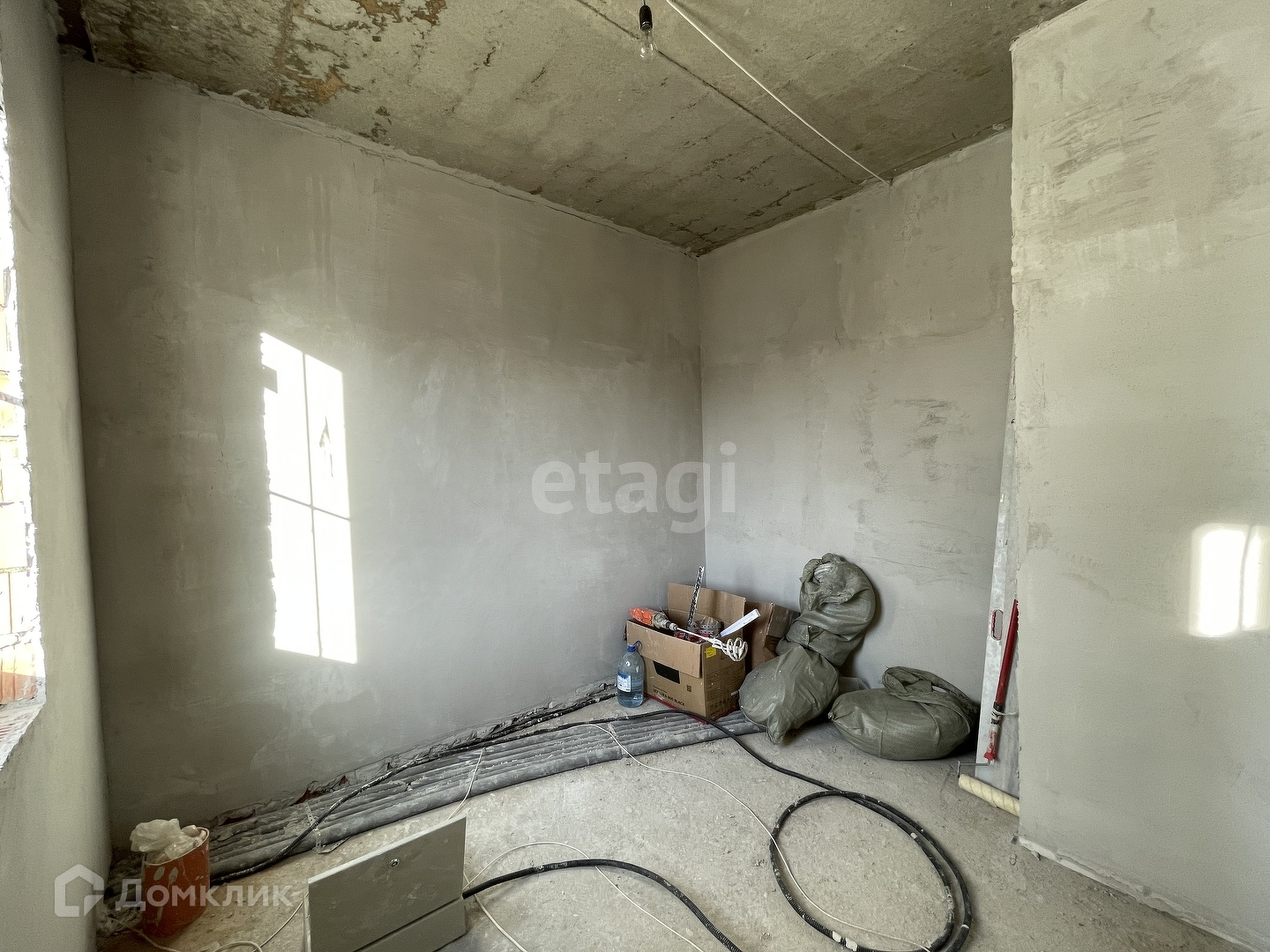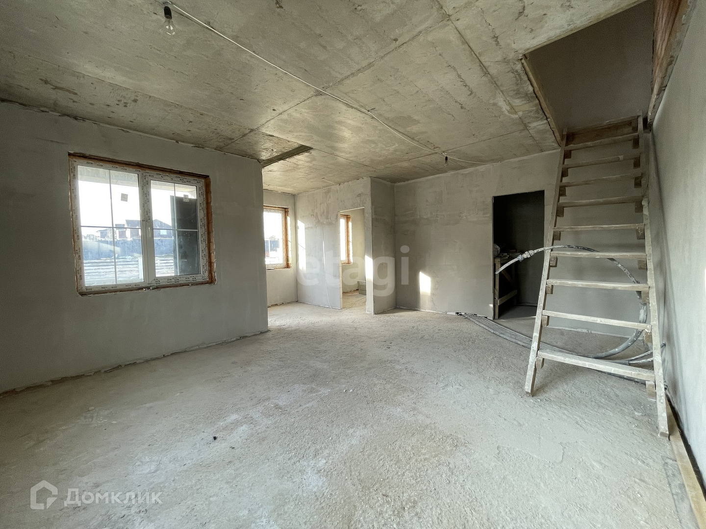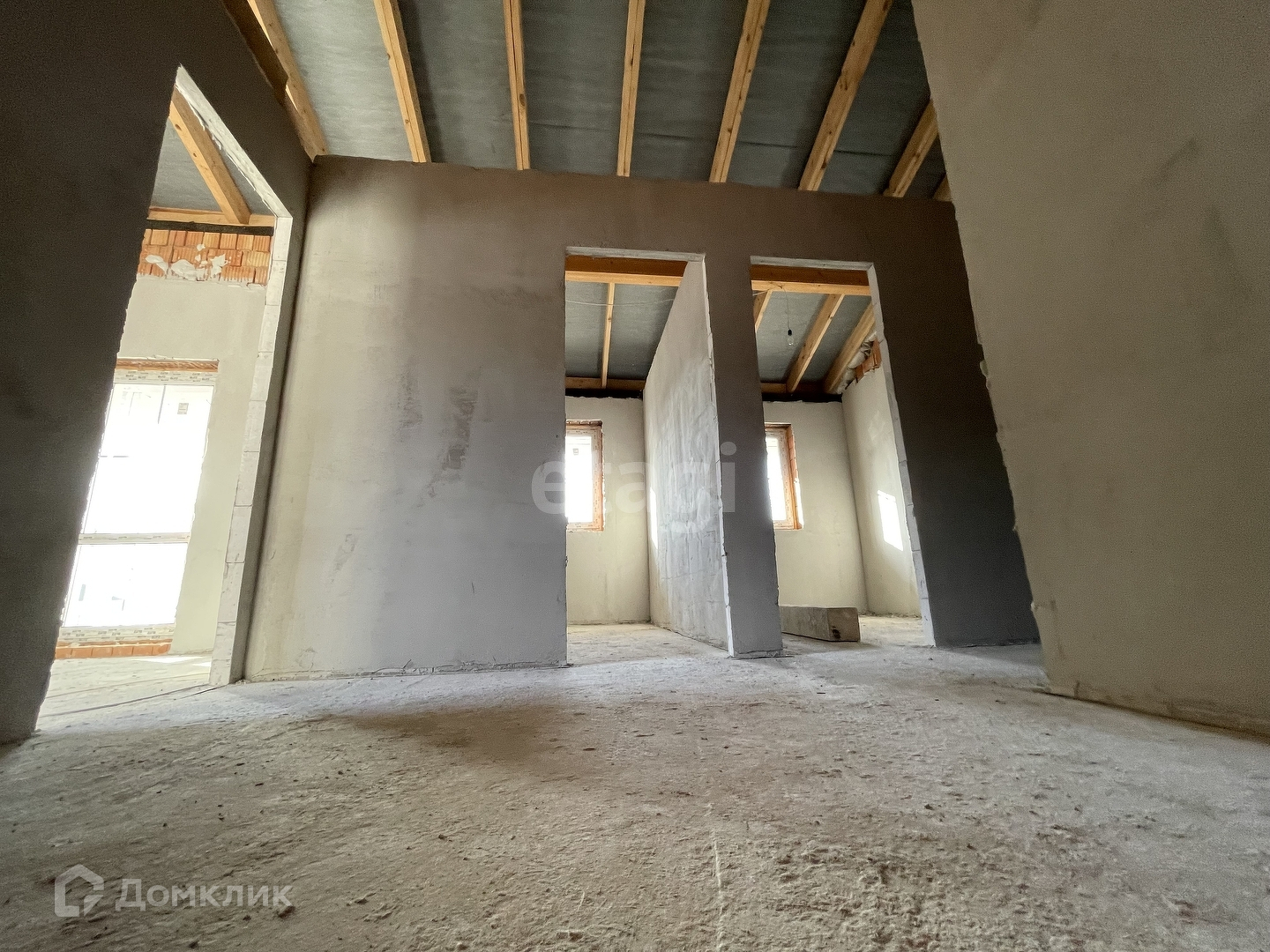 В доме выровнены и оштукатурены стены. Выполнена стяжка пола.