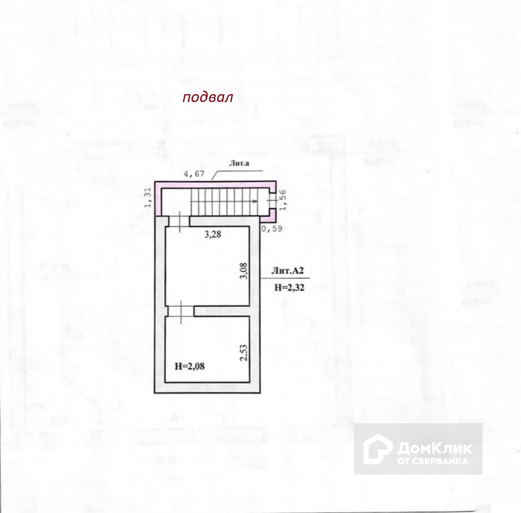 подвал: общая площадь – 18,4 м2, высота потолка – 2,32 метра.