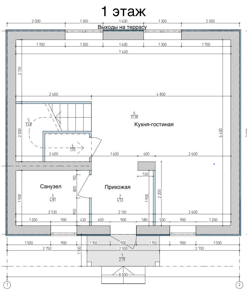 - 2 этаж- монолитная плита