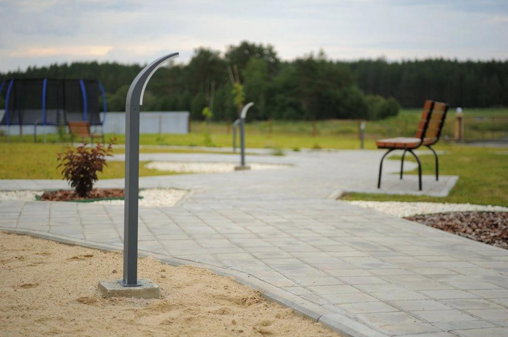Есть зона отдыха, хоккейный корт, детская площадка, искусственный водоем с песчаным пляжем и зоной барбекю. Периметр поселка огражден забором.             Хорошие дороги.