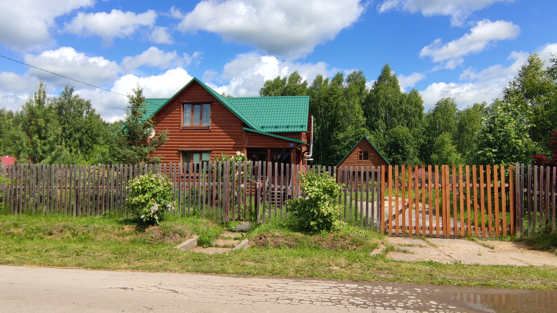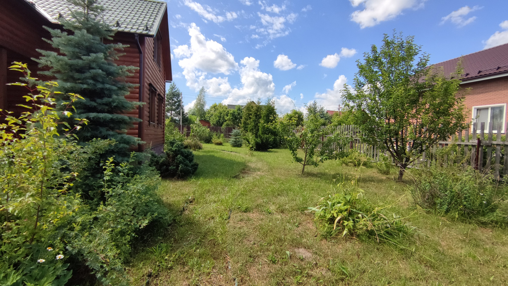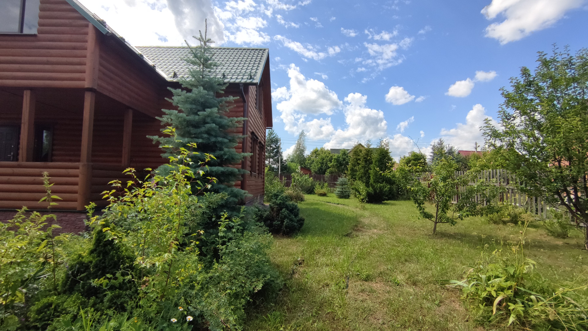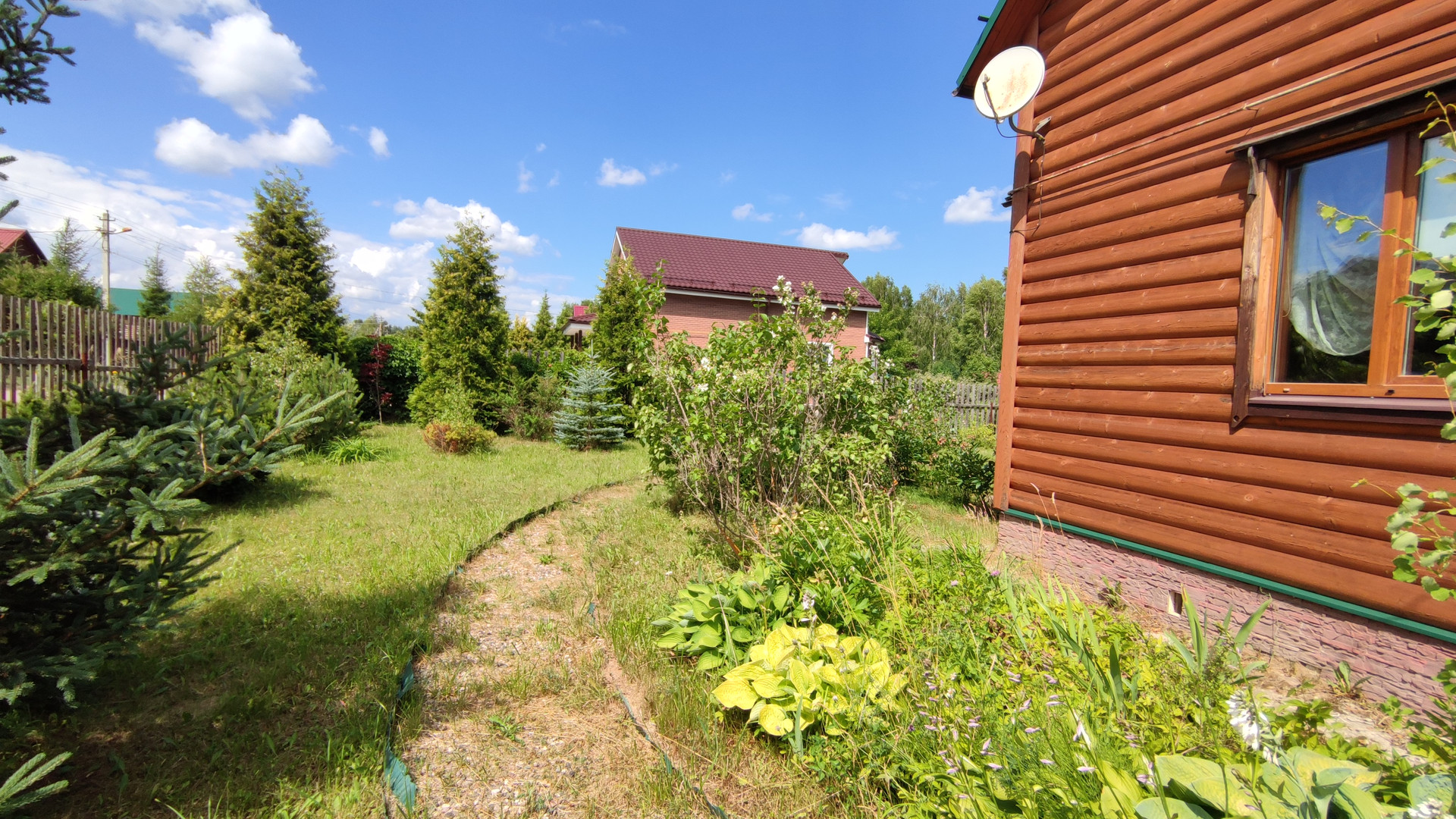 Земельный участок правильной формы, на нем растут голубые ели, плодоносящие садовые деревья и кустарники, а также многолетние растения. С участка есть свой выход в лес, который богат грибами и ягодами.