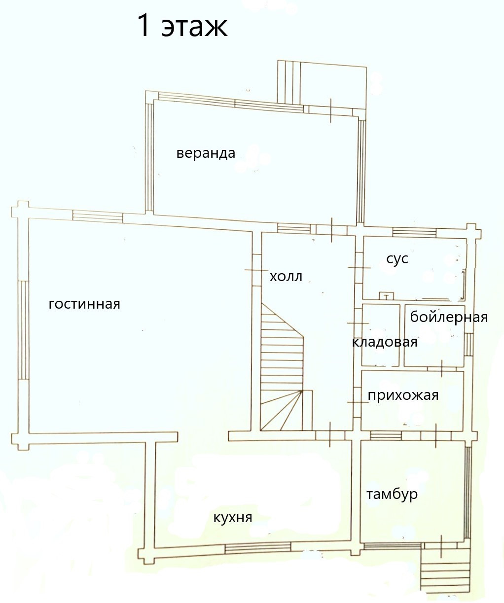 На 1-ом этаже дома расположена кухня 15,4 кв.м., большая уютная гостиная 31 кв.м., просторный коридор с местами хранения, большой СУС 4.3 кв.м., бойлерная с дорогостоящим современным газовым и водяным оборудованием, а также летняя веранда.