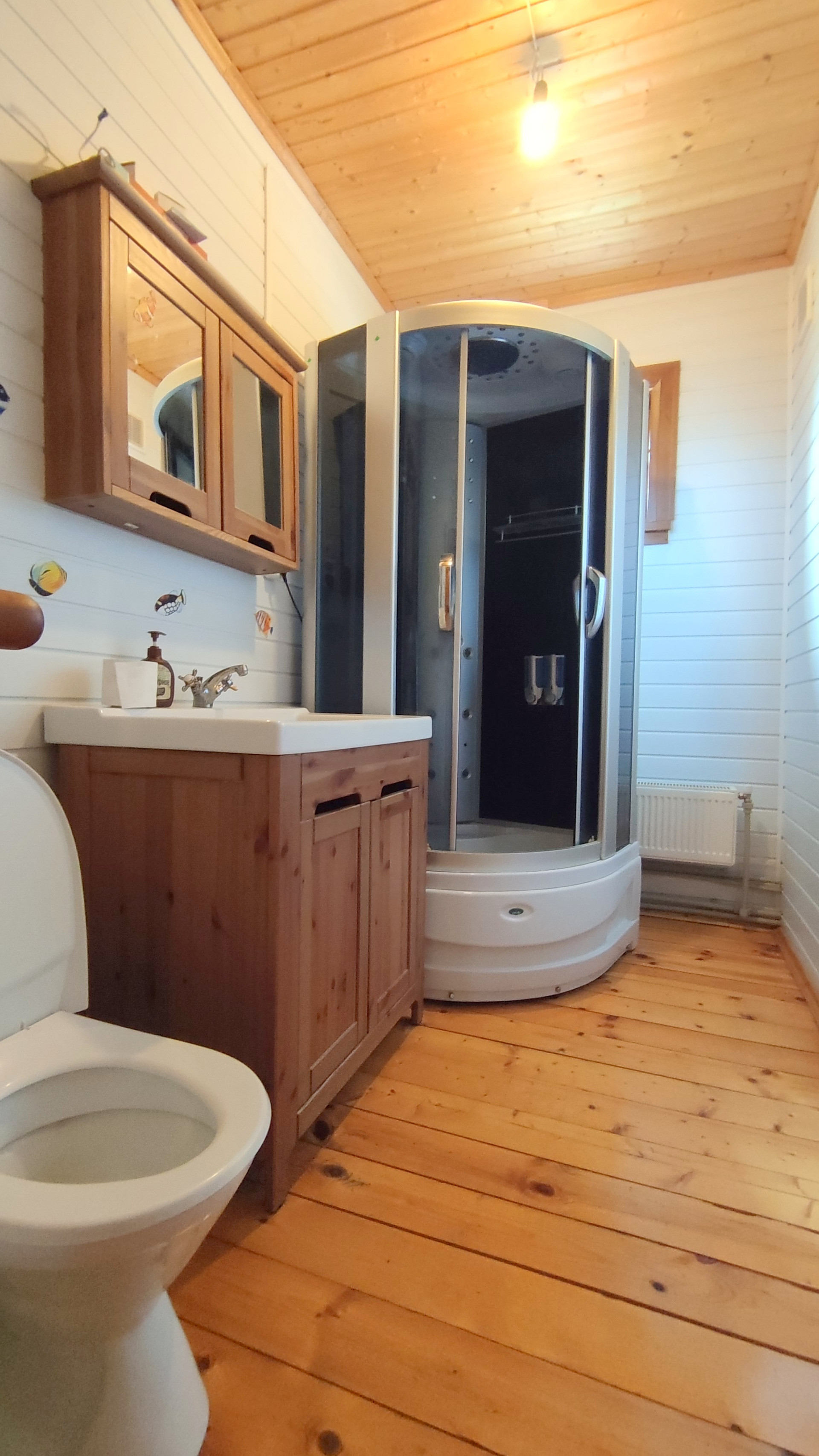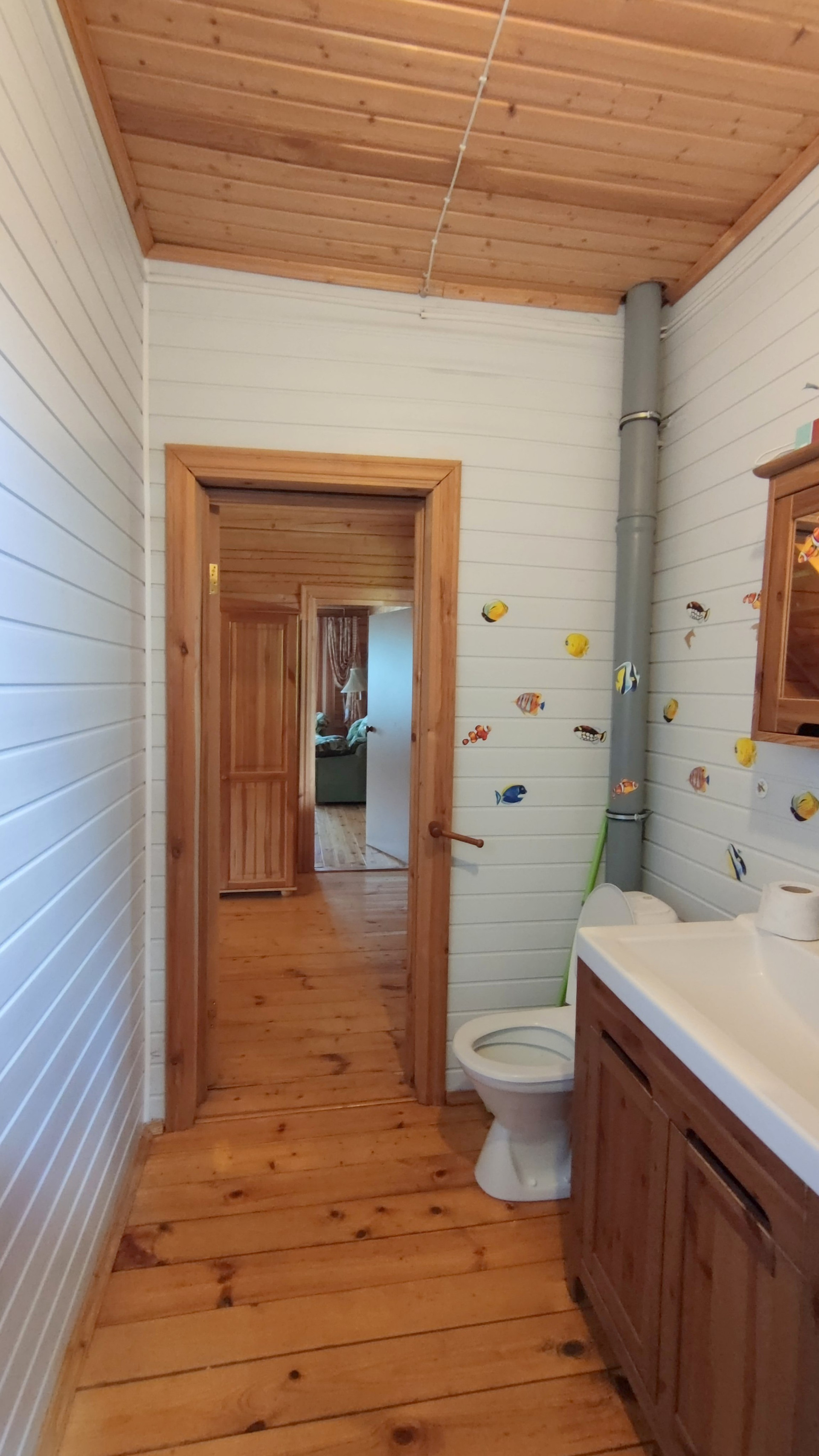 В доме сделан прекрасный ремонт, на полу использовано дерево, установлена качественная сантехника, радиаторы с регуляторами температуры, везде установлены пластиковые окна.